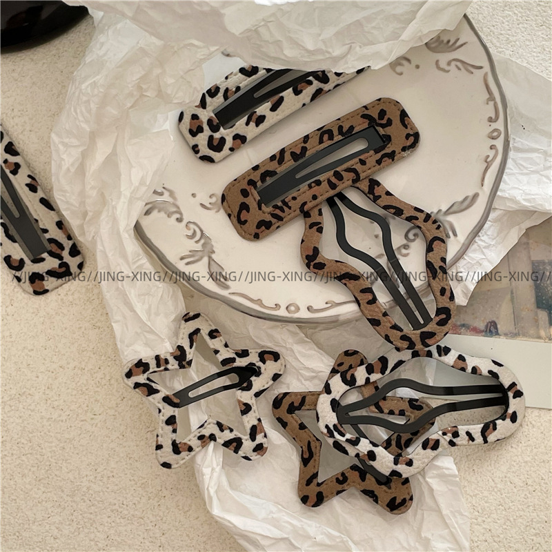패션 레트로 할로우 구름 다섯개 별 레오파드 무늬 BB 클립 부러진 헤어 뱅이 클립 기하학적 직사각형 헤어핀 사이드 클립