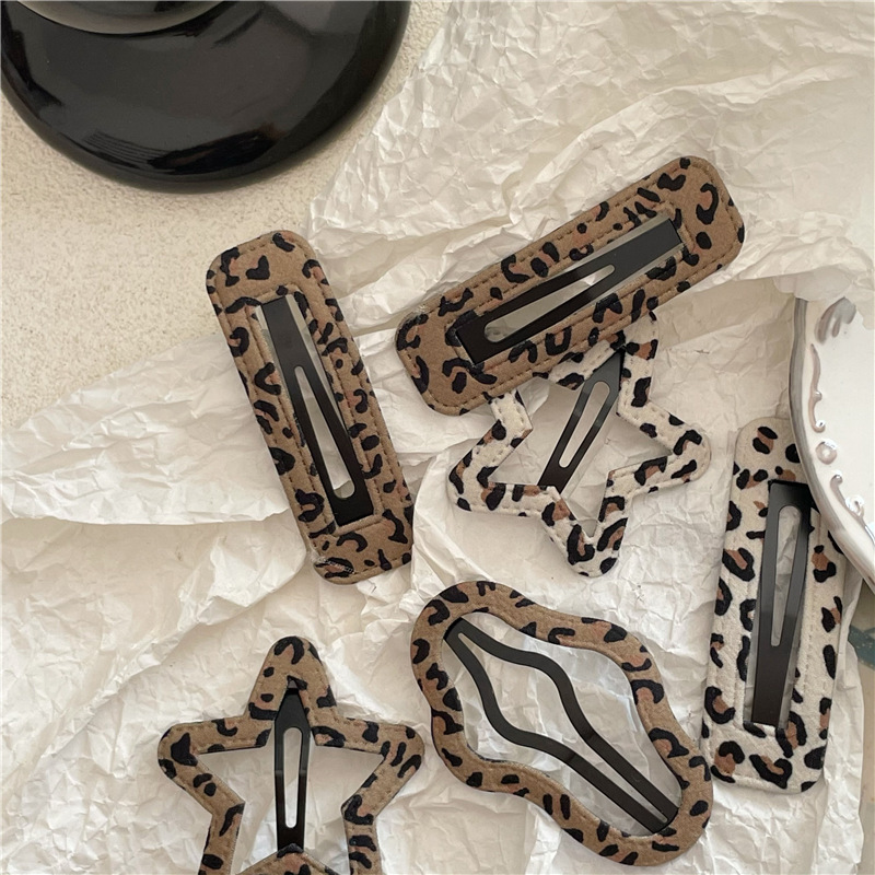 패션 레트로 할로우 구름 다섯개 별 레오파드 무늬 BB 클립 부러진 헤어 뱅이 클립 기하학적 직사각형 헤어핀 사이드 클립스토어 가기