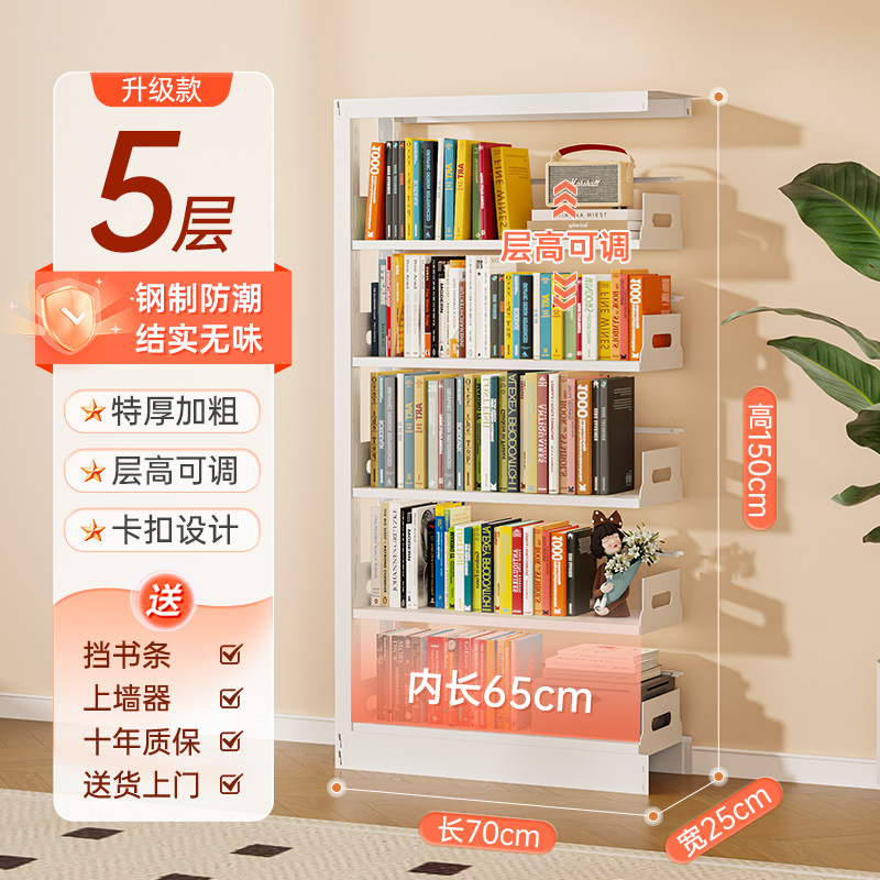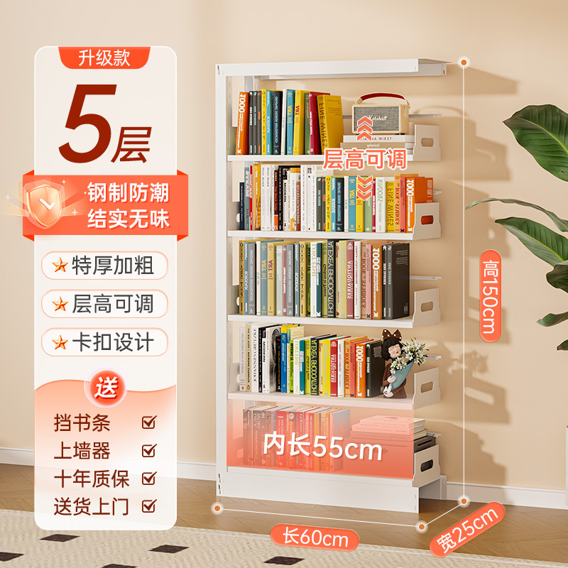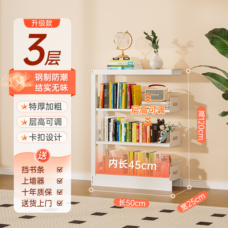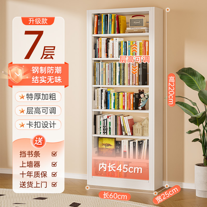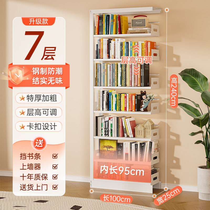 25cm 폭의 가정용 철제 도서관 책장, 바닥형 수납 선반, 철제 일체형 벽걸이 다층 책장 수납 선반
