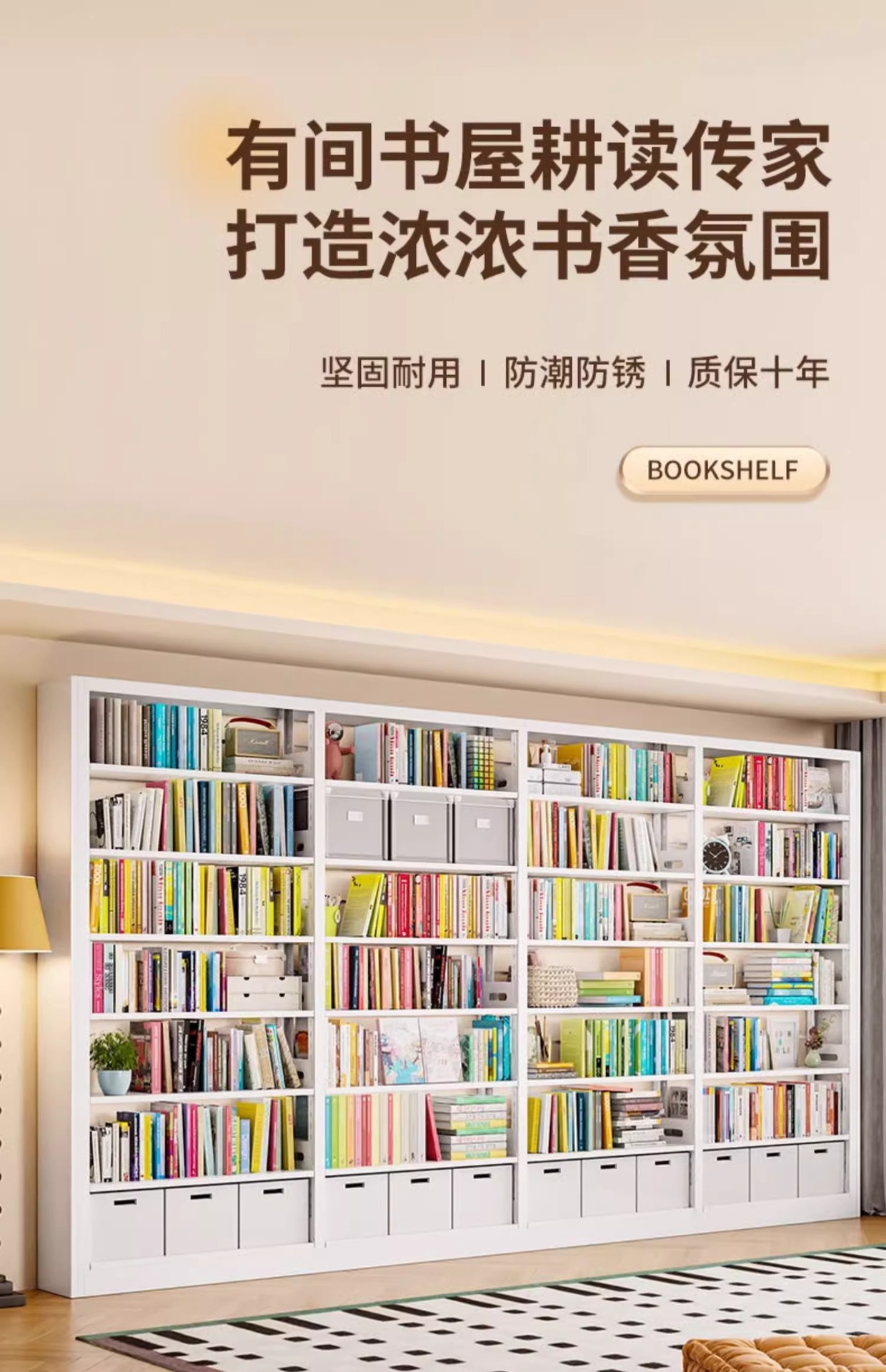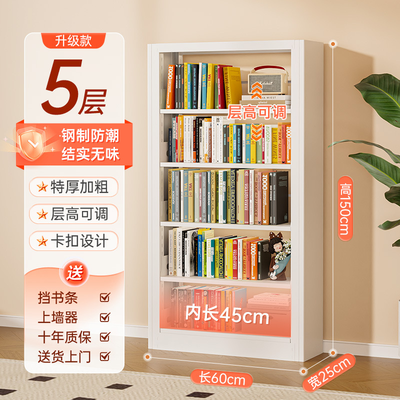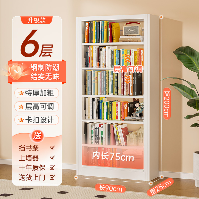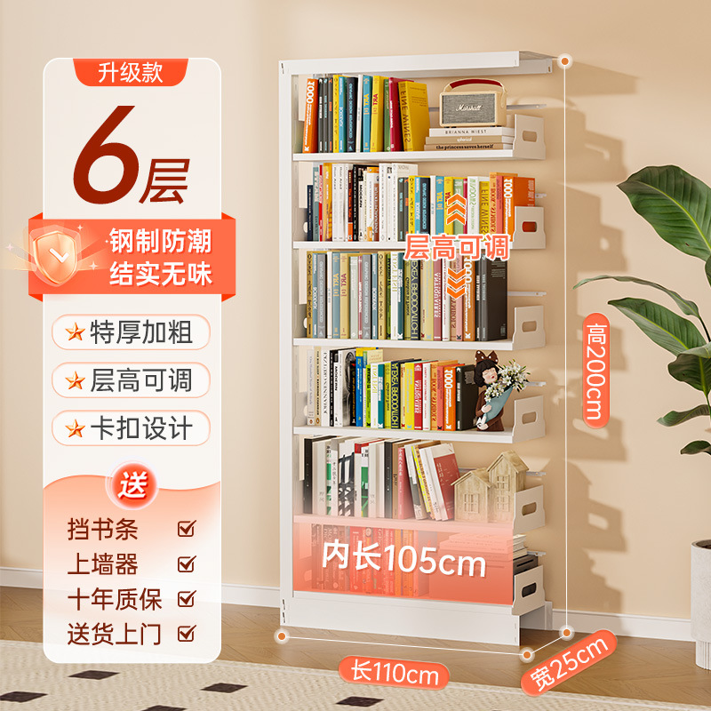 25cm 폭의 가정용 철제 도서관 책장, 바닥형 수납 선반, 철제 일체형 벽걸이 다층 책장 수납 선반