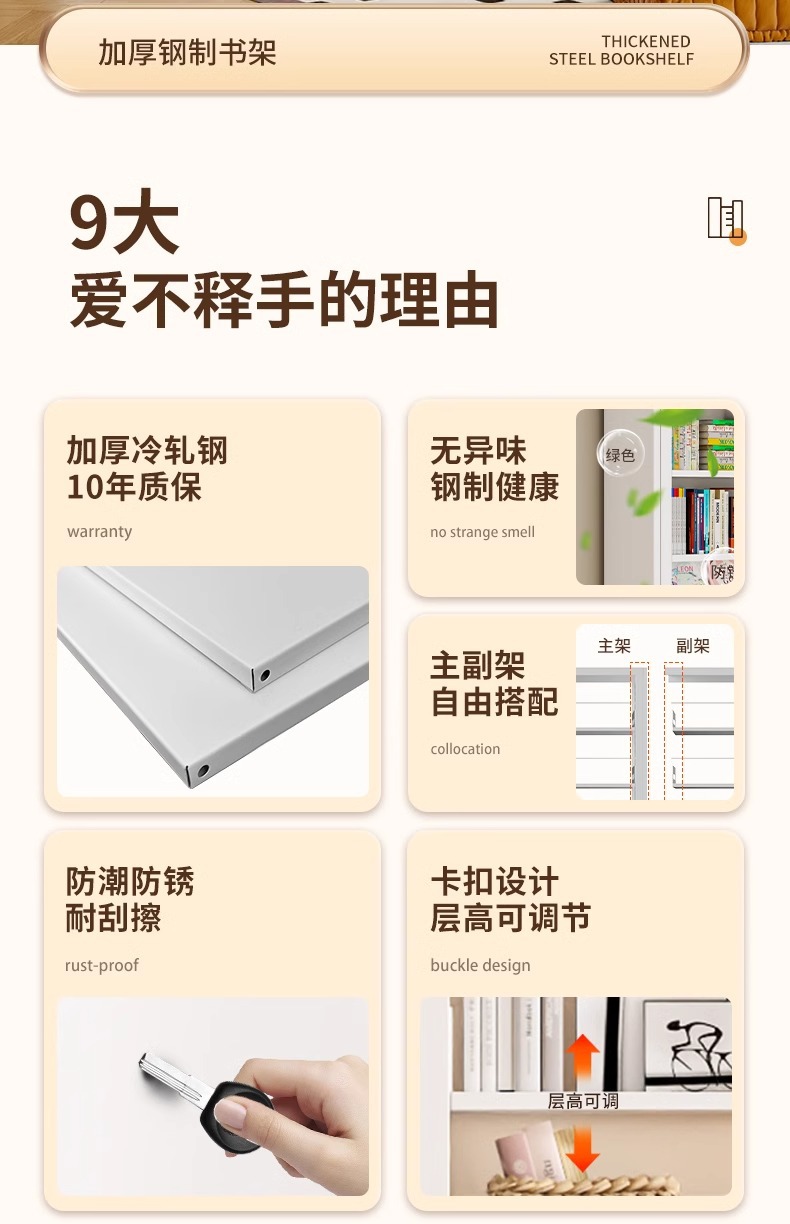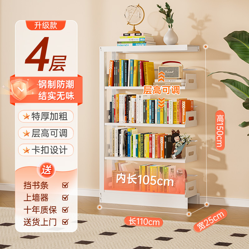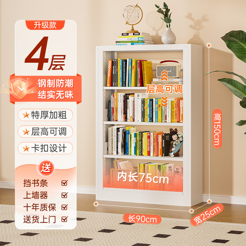 25cm 폭의 가정용 철제 도서관 책장, 바닥형 수납 선반, 철제 일체형 벽걸이 다층 책장 수납 선반스토어 가기