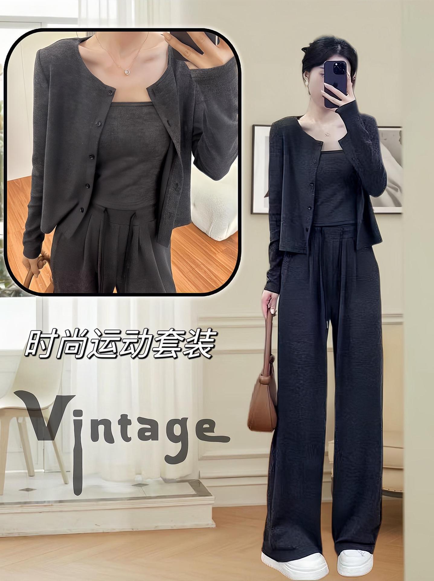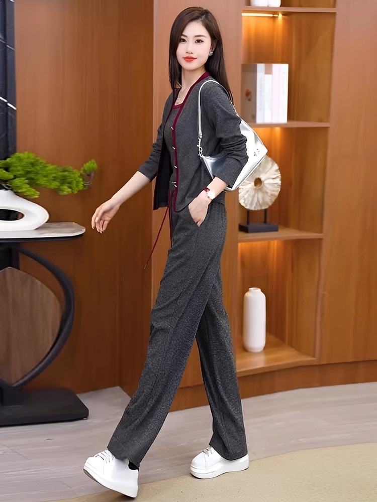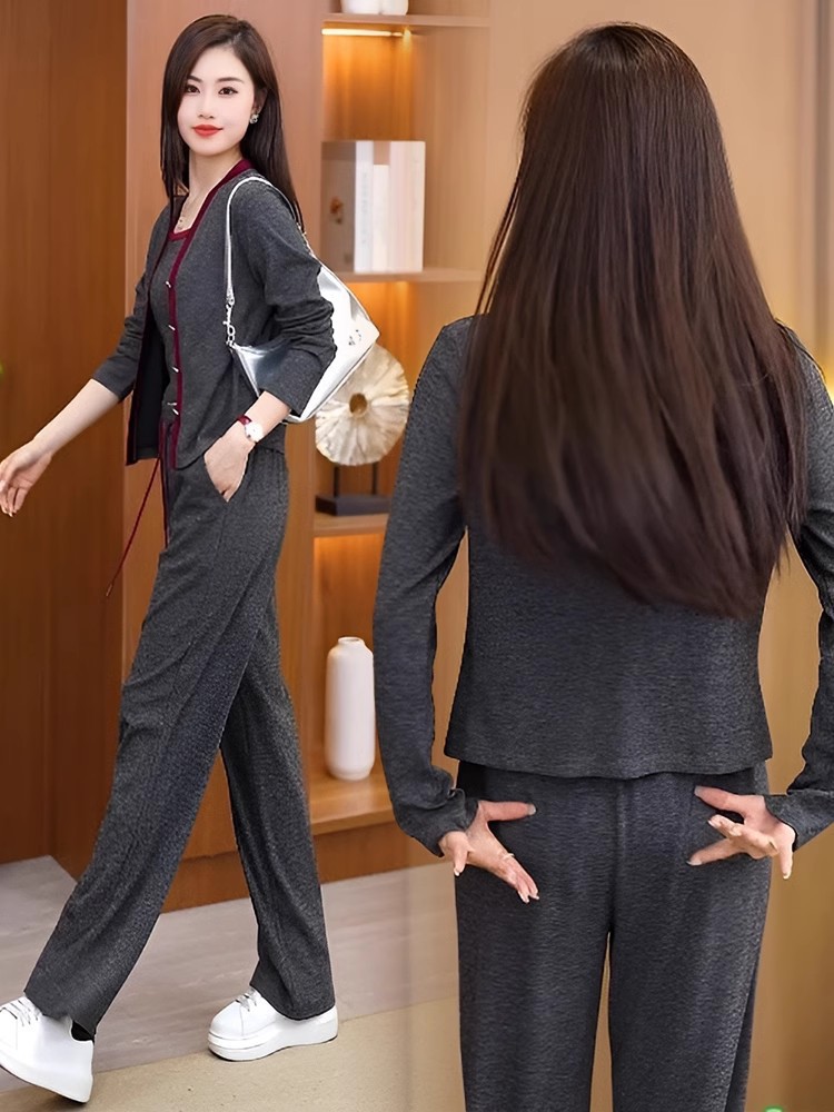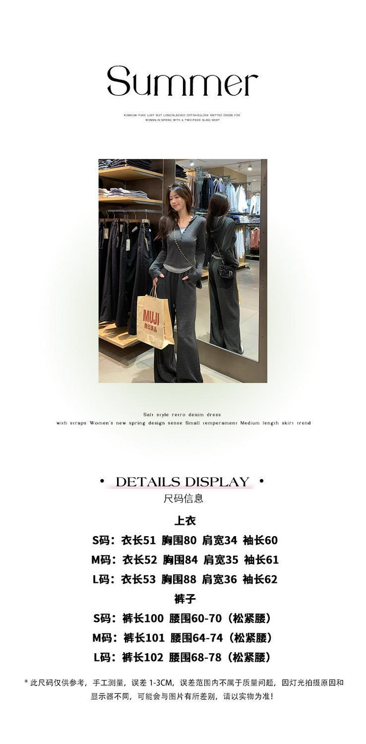 찹쌀 양복 투피스 캐주얼 스포츠 양복 가짜 투피스 긴팔 탑 여성 가을 하이 웨이스트 바지 와이드 레그 팬츠스토어 가기