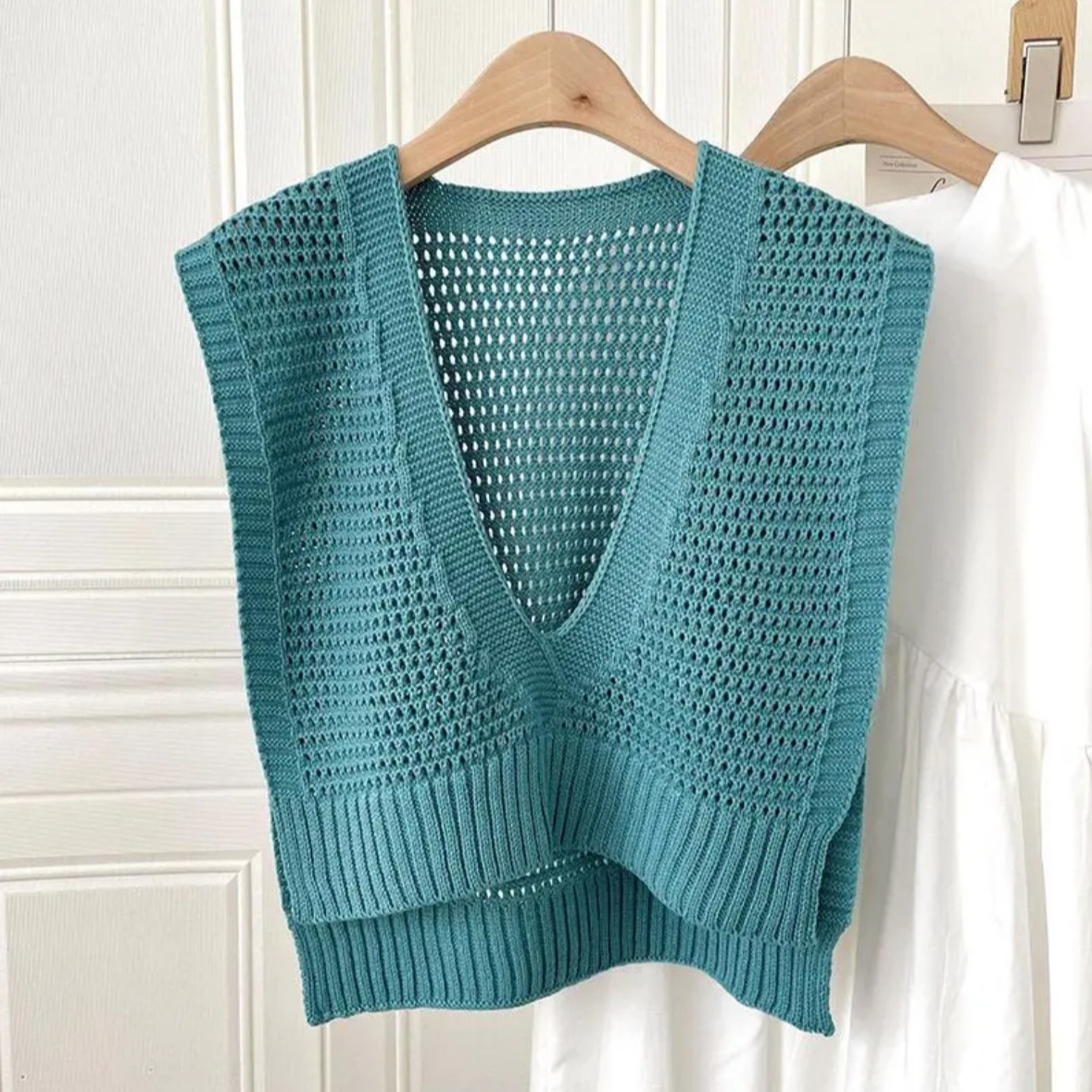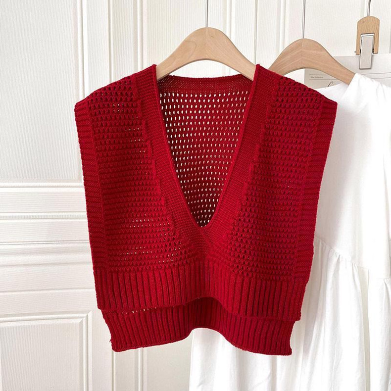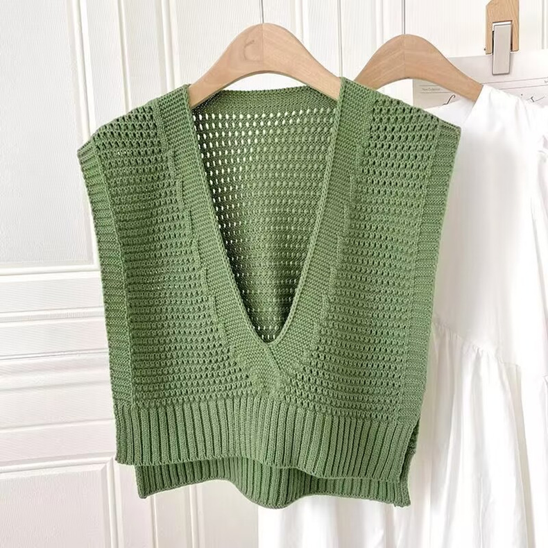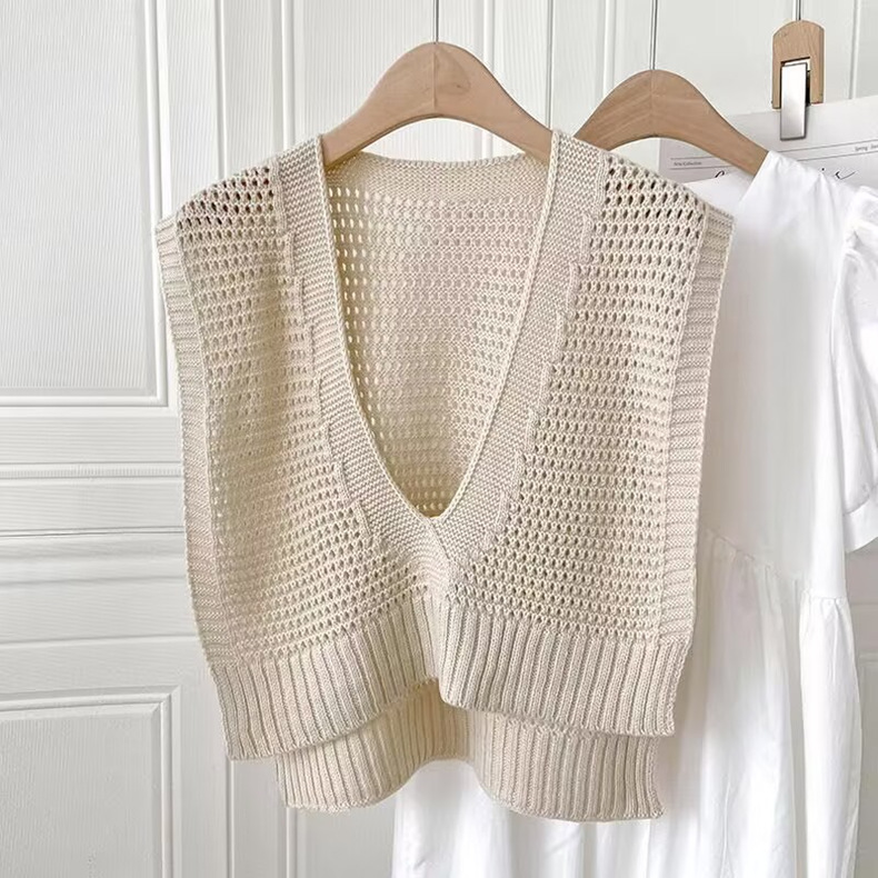 여름 올 매치 블라우스 니트 V 넥 목도리 2024 새로운 여성 외부 에어컨 룸 짧은 재킷 조끼스토어 가기