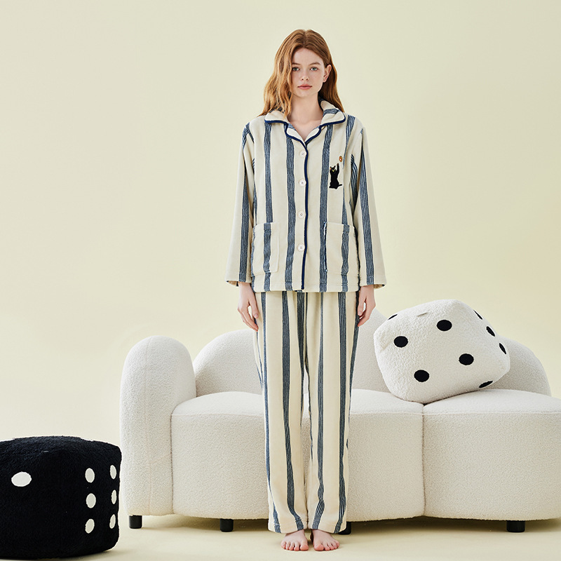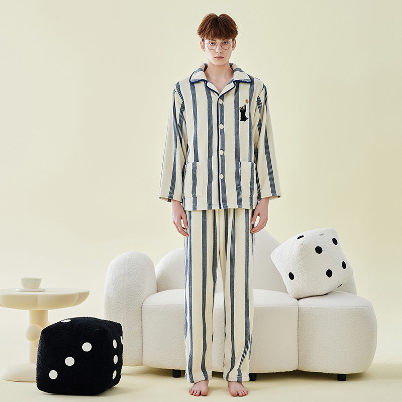 [깨진 코드 복지] 가을과 겨울 산호 양털 커플 잠옷 여성 남성 잠옷 홈 옷 깨진 코드 초 살해