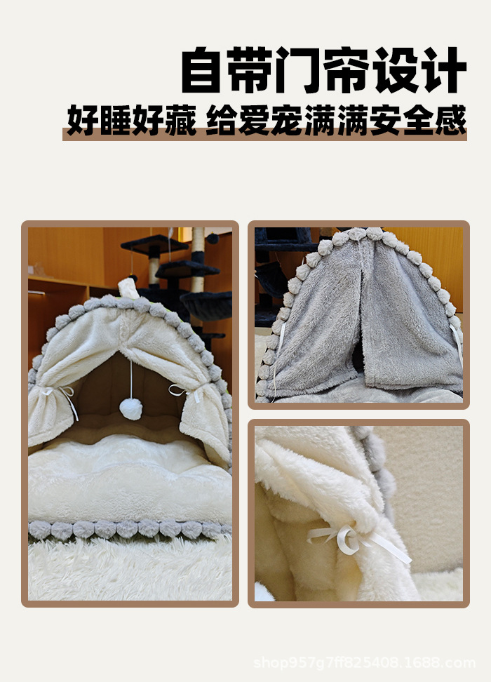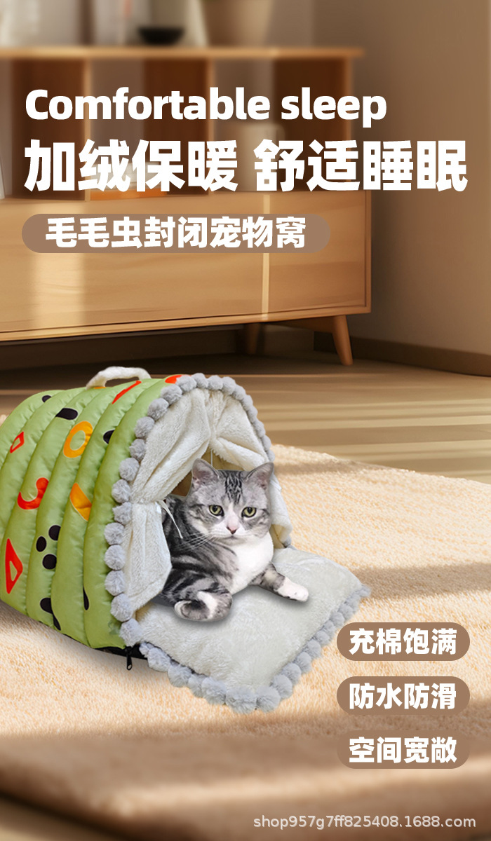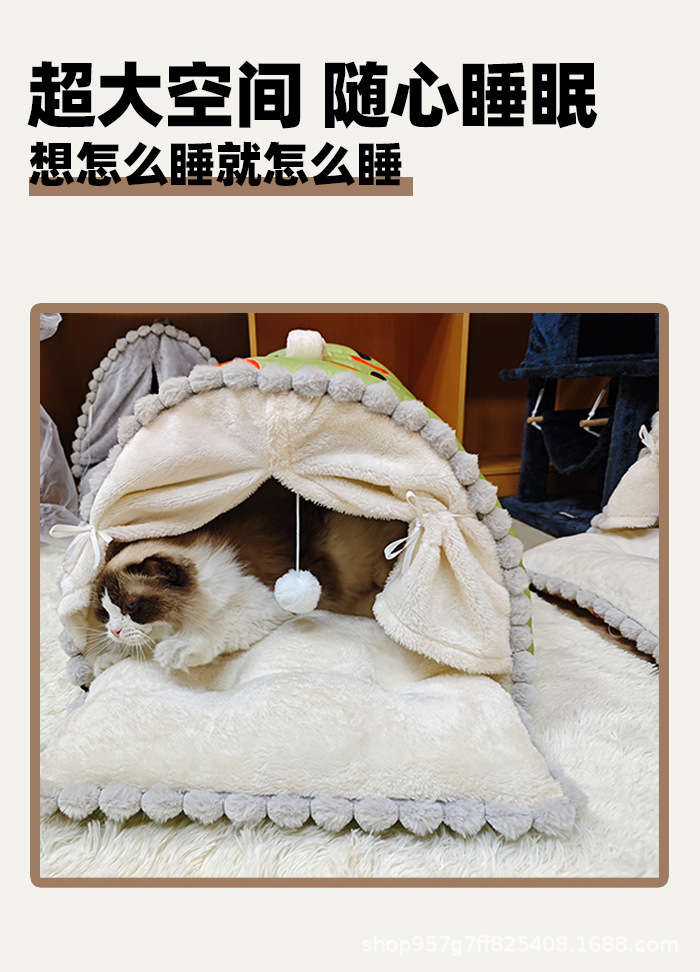 고양이 집, 애완동물 집, 고양이 매트, 따뜻한 밀폐형 집, 중소형 강아지 집, 겨울용 두꺼운 보온재스토어 가기