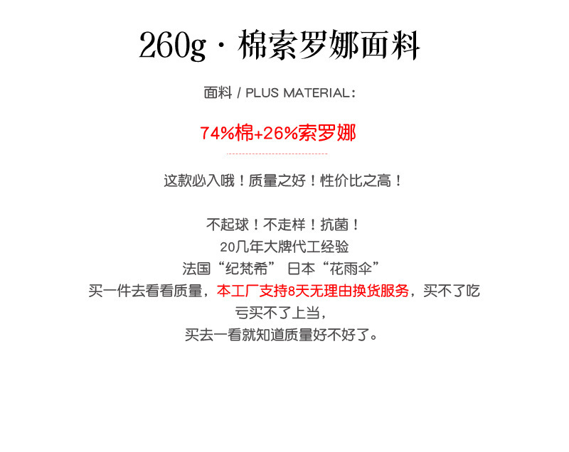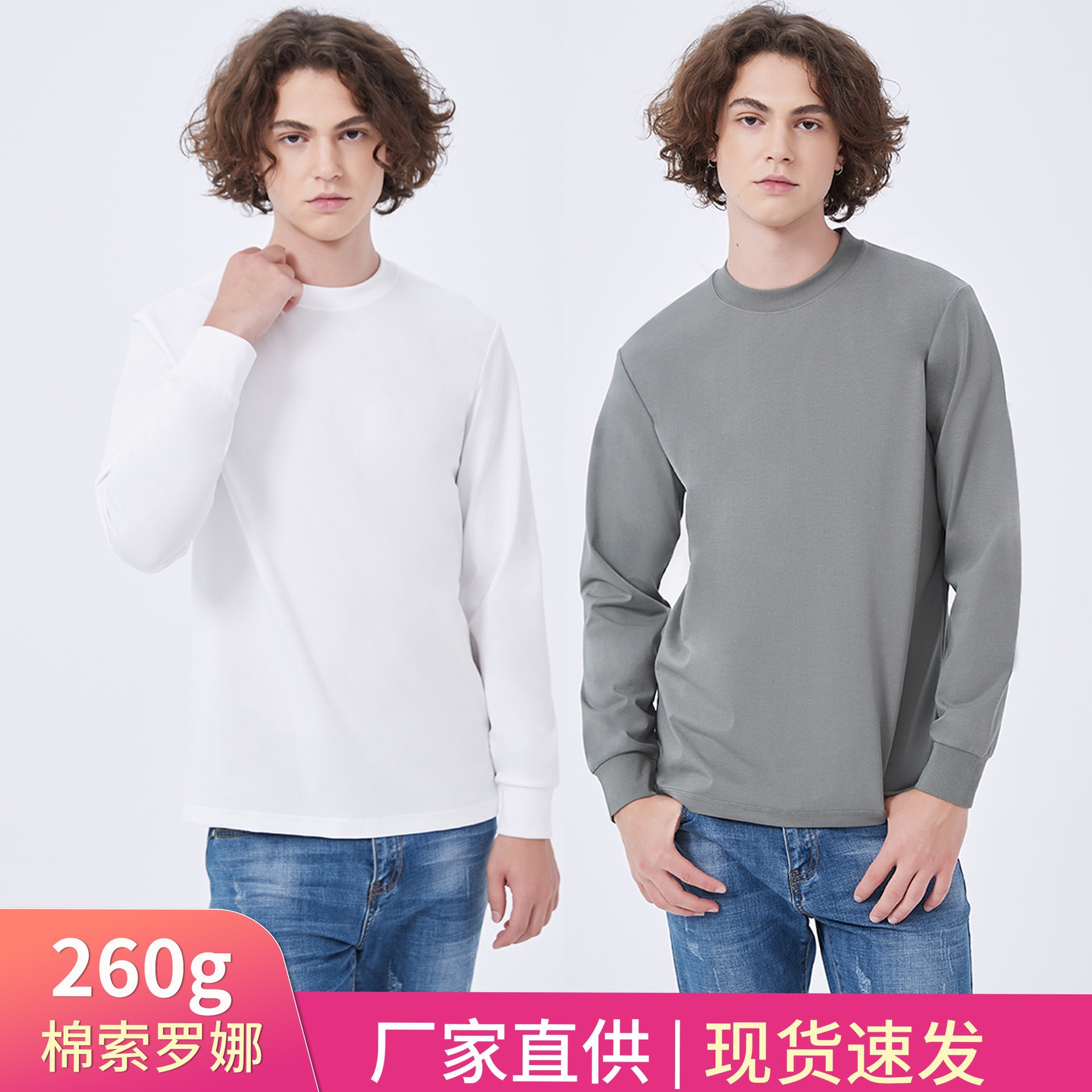 하이 엔드 260g 코튼 티셔츠 남성용 수오로나베이스 셔츠 스웨터 젊은 여성 크루 넥 비 다림질 항균 남성용 티셔츠 긴팔스토어 가기