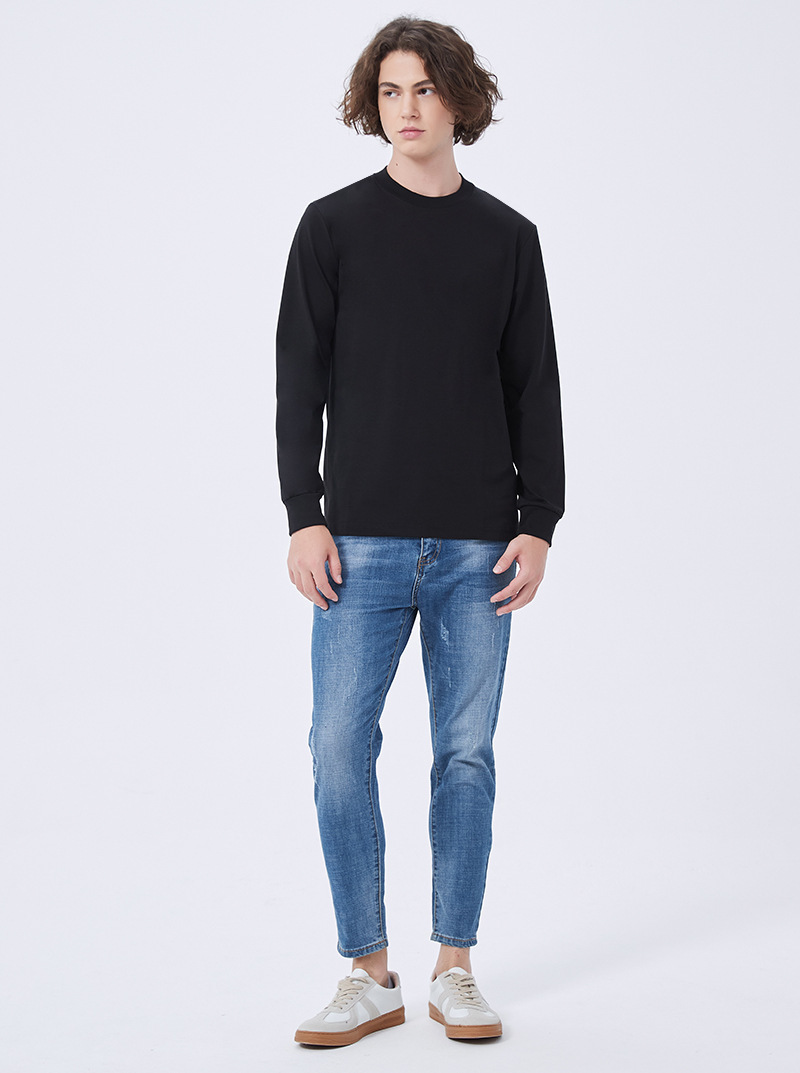 하이 엔드 260g 코튼 티셔츠 남성용 수오로나베이스 셔츠 스웨터 젊은 여성 크루 넥 비 다림질 항균 남성용 티셔츠 긴팔