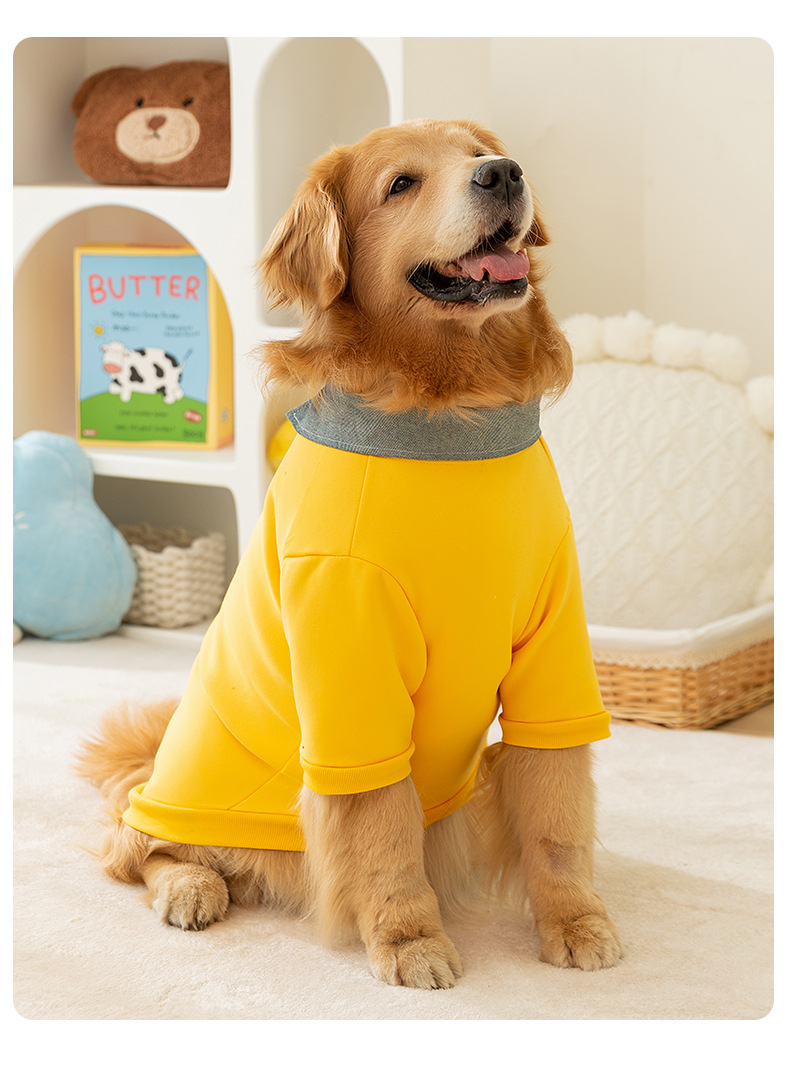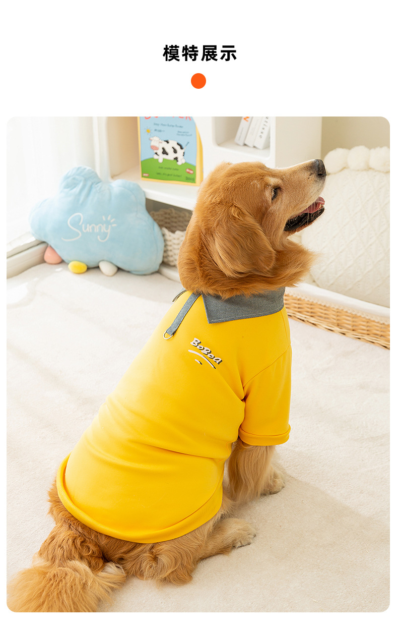 가을과 겨울 큰 개 옷 POLO 칼라 큰 개 운동복 얇은 간단한 스타일 두 다리 옷 황금 머리 테두리 동물 축산 애완 동물 옷