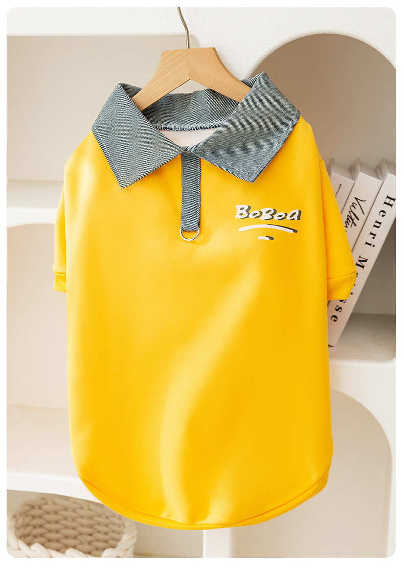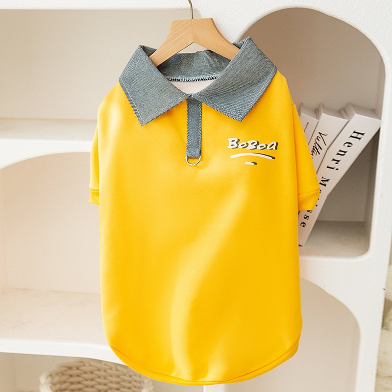 가을과 겨울 큰 개 옷 POLO 칼라 큰 개 운동복 얇은 간단한 스타일 두 다리 옷 황금 머리 테두리 동물 축산 애완 동물 옷스토어 가기