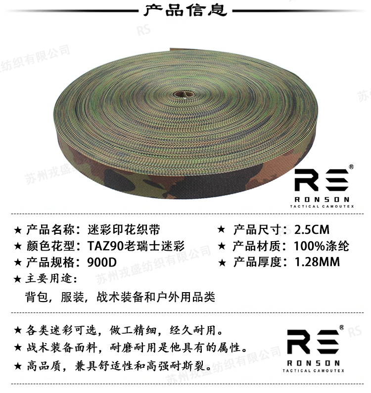 TAZ16 새로운 스위스 무장 위장 양면 인쇄 리본 전술 장비 야외 액세서리 25MM 와이드스토어 가기