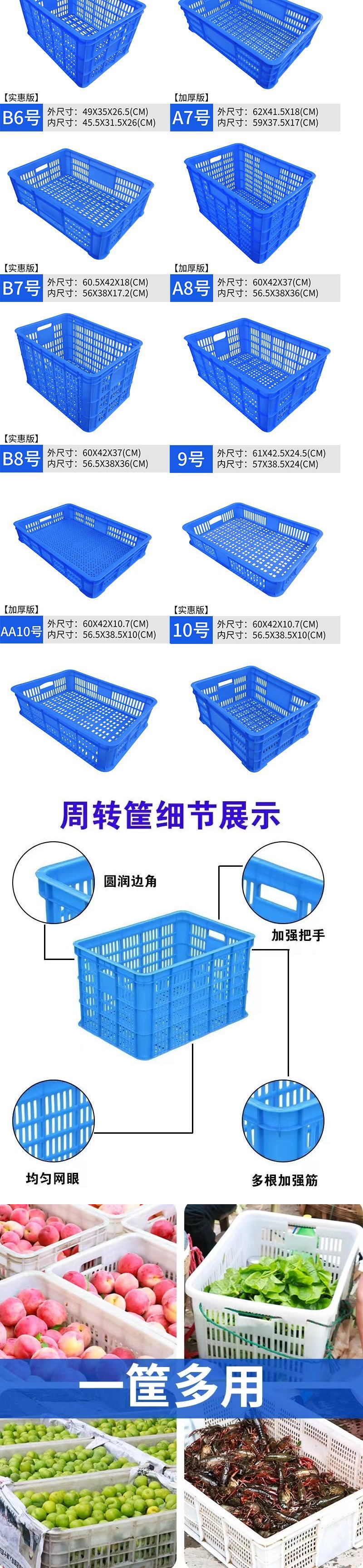 직사각형 중공 대형 익스프레스 박스 회전율 플라스틱 상자 저장 플라스틱 바구니 야채와 과일 운송 바구니스토어 가기