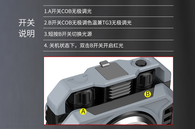 2.B开关cob泛光灯无极调色温兼TG3聚光灯无极调光