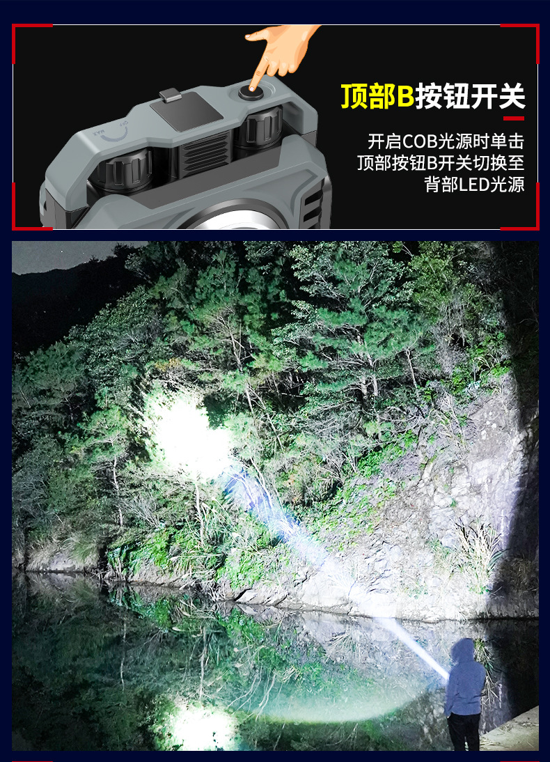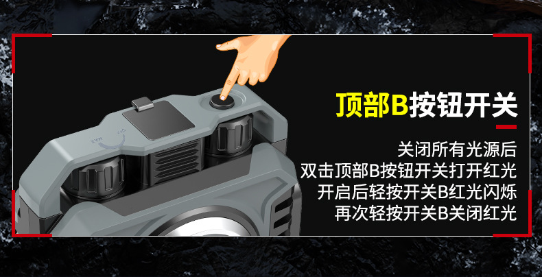 4. 关机状态下,双击B开关开启红光,短按红光爆闪
