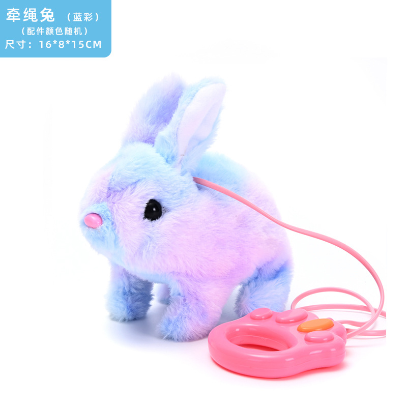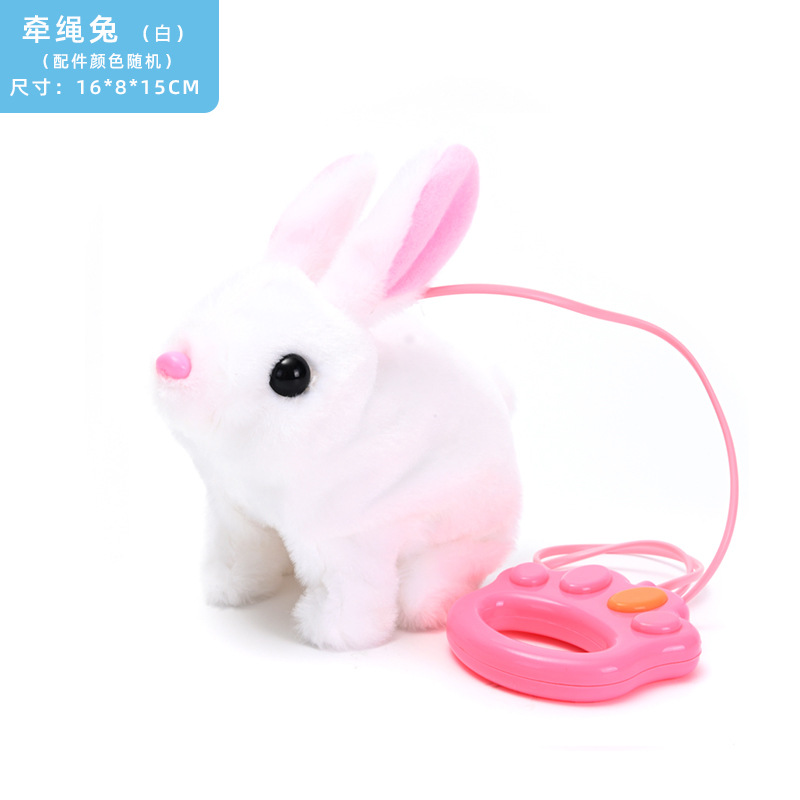 국경을 넘는 새로운 로프 전기 봉제 토끼 앞뒤로 전자 애완 동물 작은 흰 토끼 어린이 장난감 도매스토어 가기