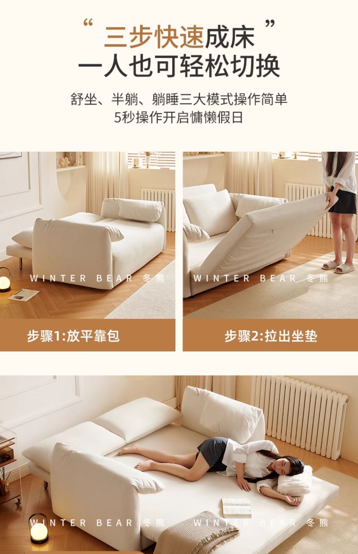 통류트 현대 간단한 접이식 소파 작은 아파트 거실 발코니 더블 확장 가능한 침대 크림 스타일 소파 침대