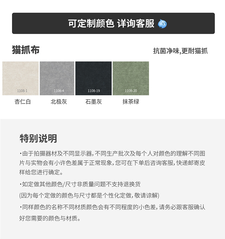 • [편안한 버전] 183CM 항균 고양이 발톱 천 소파 베드