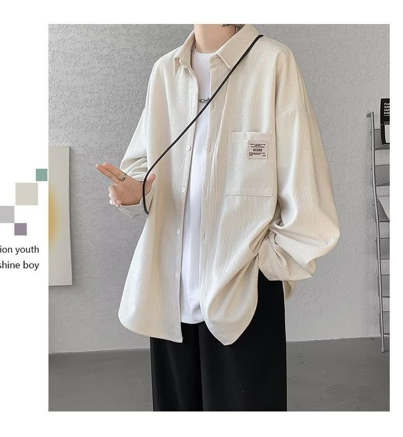 일본 긴팔 셔츠 남자 봄과 가을 최고 최고급 간단한 캐주얼 루즈 셔츠 재킷 소년 십대스토어 가기