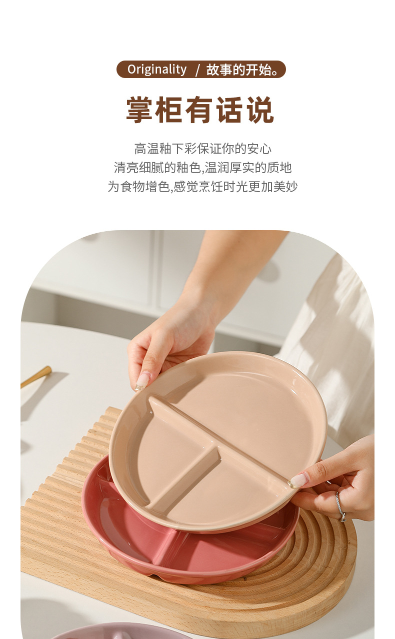 세라믹 일본식 스플릿 플레이트 어린이 스플릿 플레이트 조식 플레이트 크리에이티브 스플릿 플레이트 가구 지방 감소 체중 감소 정량스토어 가기
