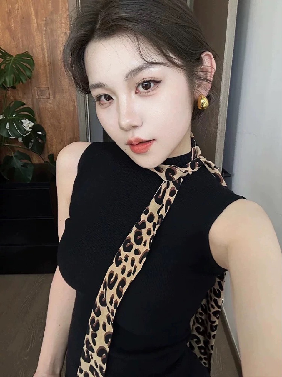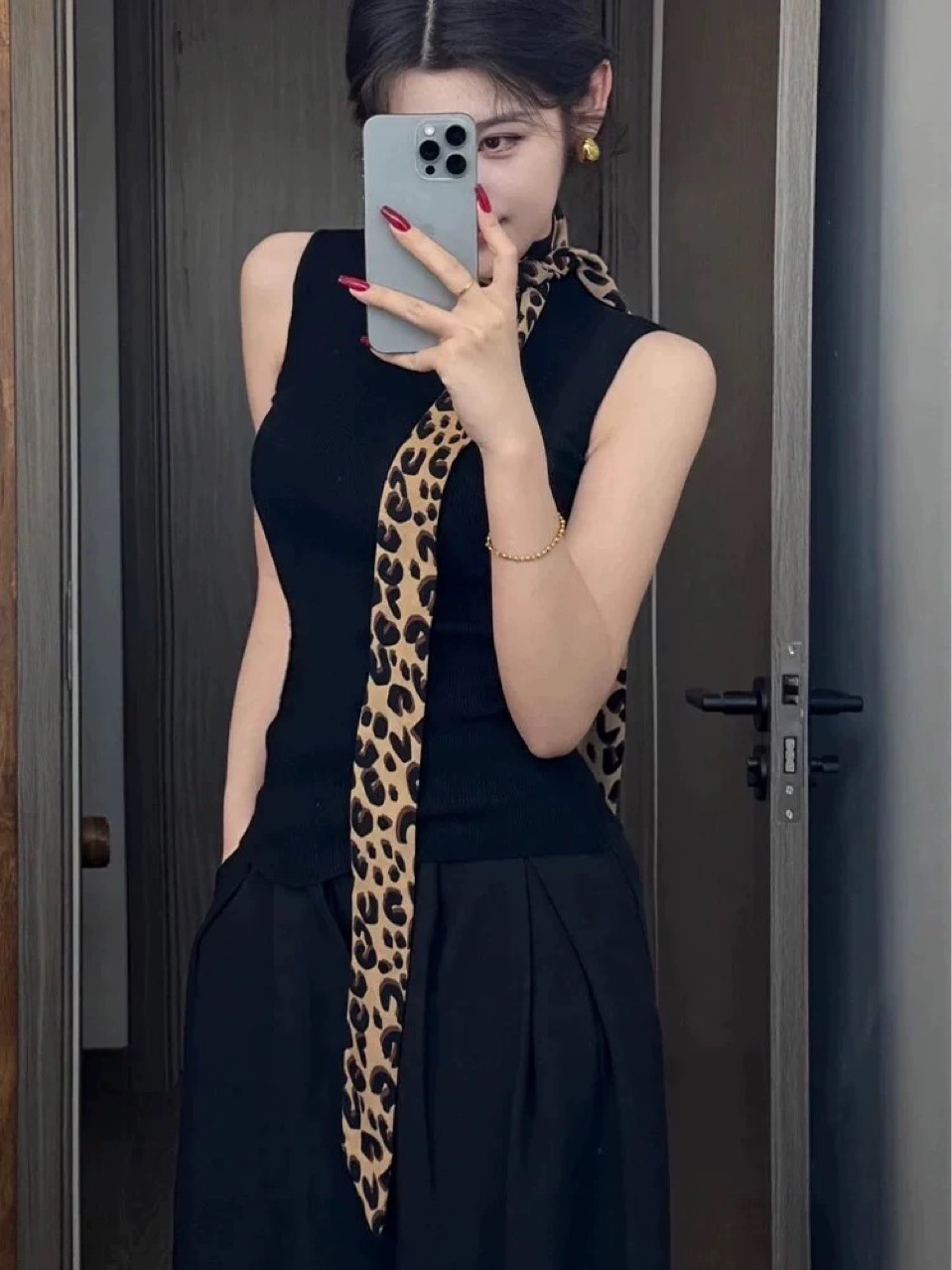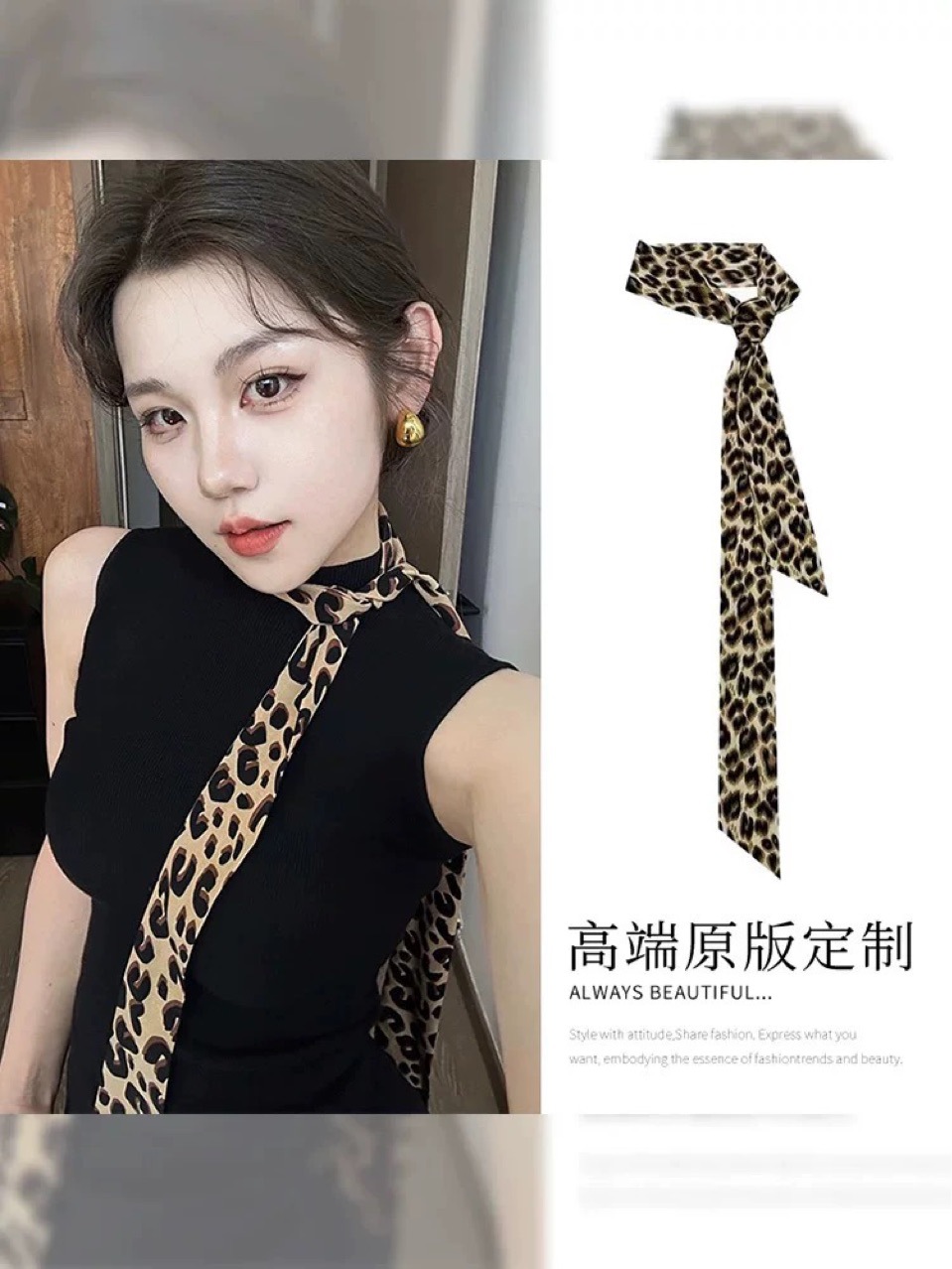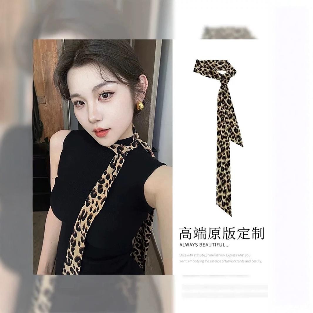 미국 레오파드 긴 작은 실크 스카프 밀레니엄 스파이스 소녀 패션 독특한 트렌드 스트랩 초커 넥 체인 날씬한 넥 벨트