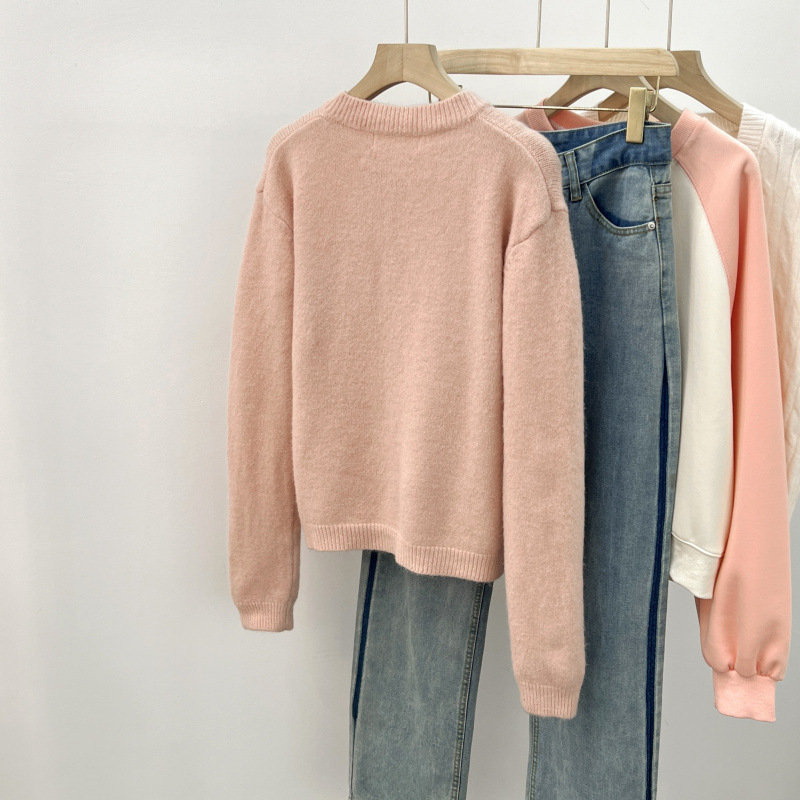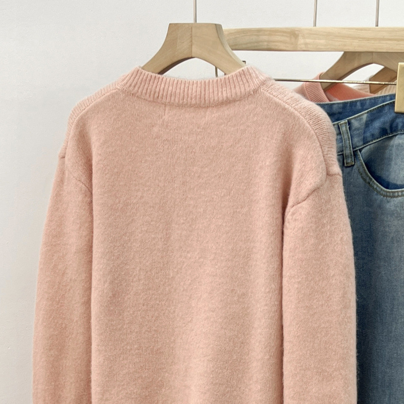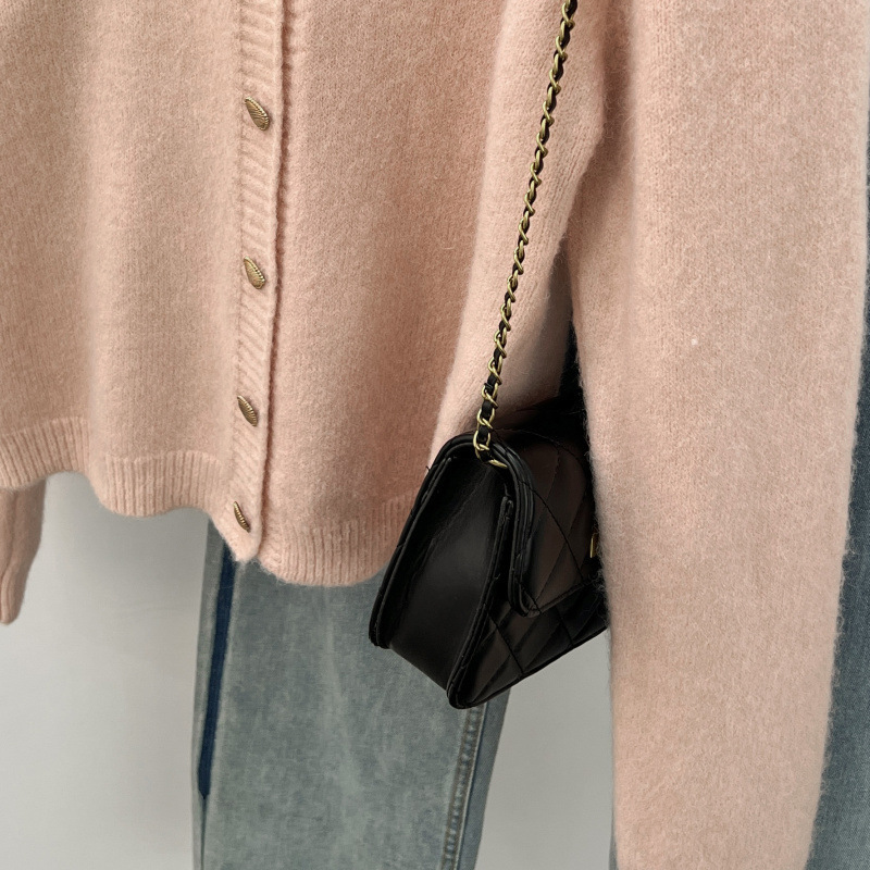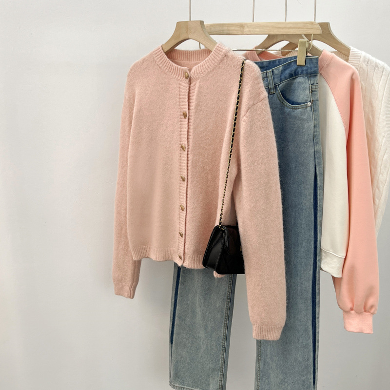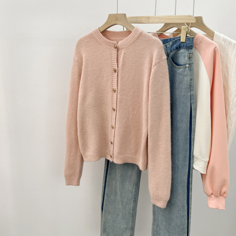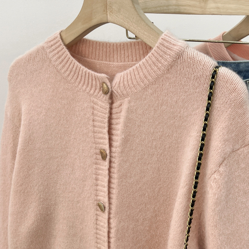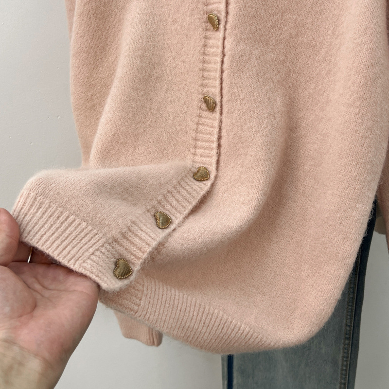 핑크 사랑 골드 버튼 스웨터 여자의 2024 가을 겨울 새로운 슬림 너구리 벨벳 외부 니트 카디건 재킷스토어 가기