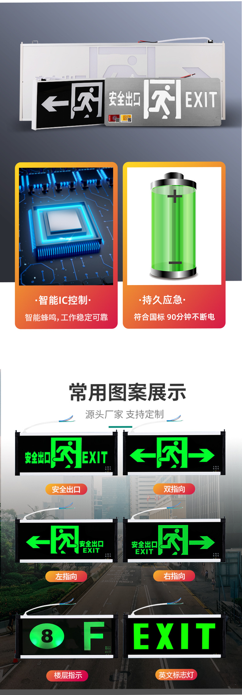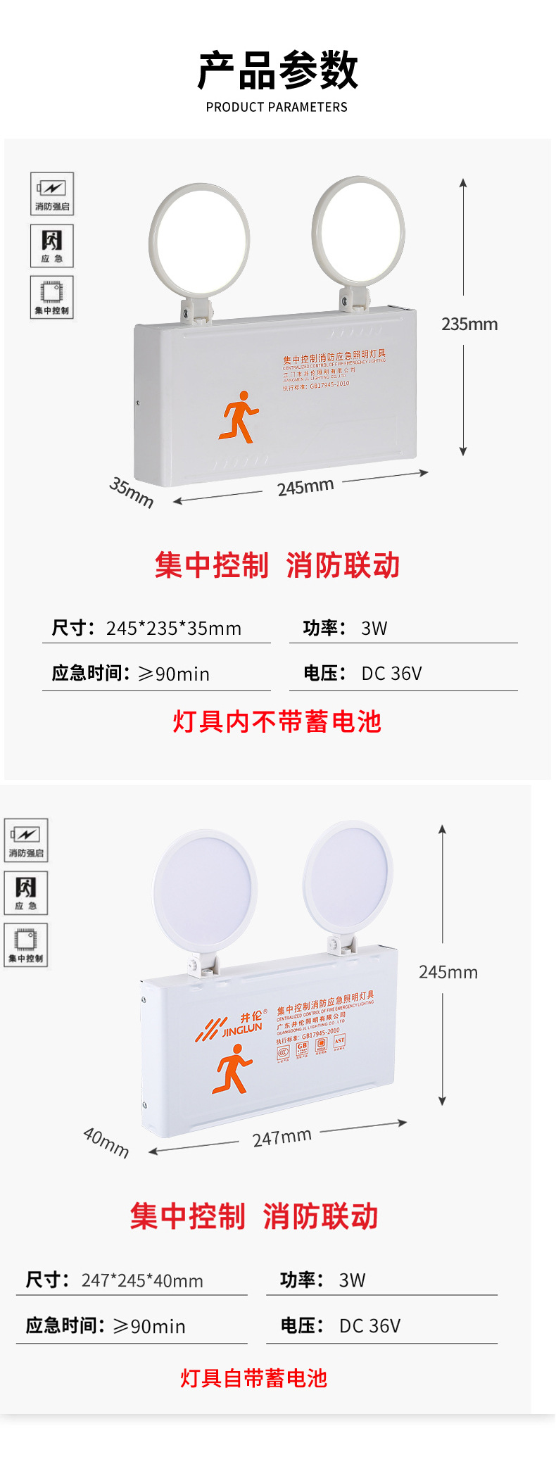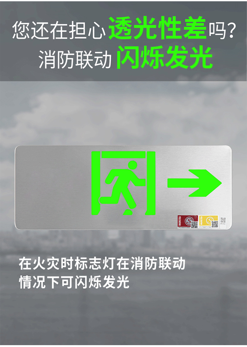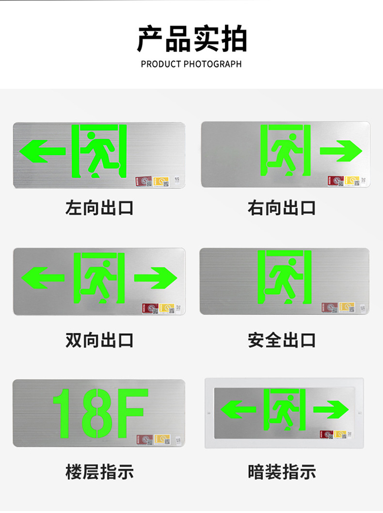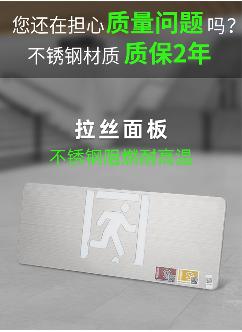 Jinglun 새로운 국가 표준 화재 비상 조명 유형 36v 스테인레스 스틸 대피 표지등 led 안전 출구 표시등