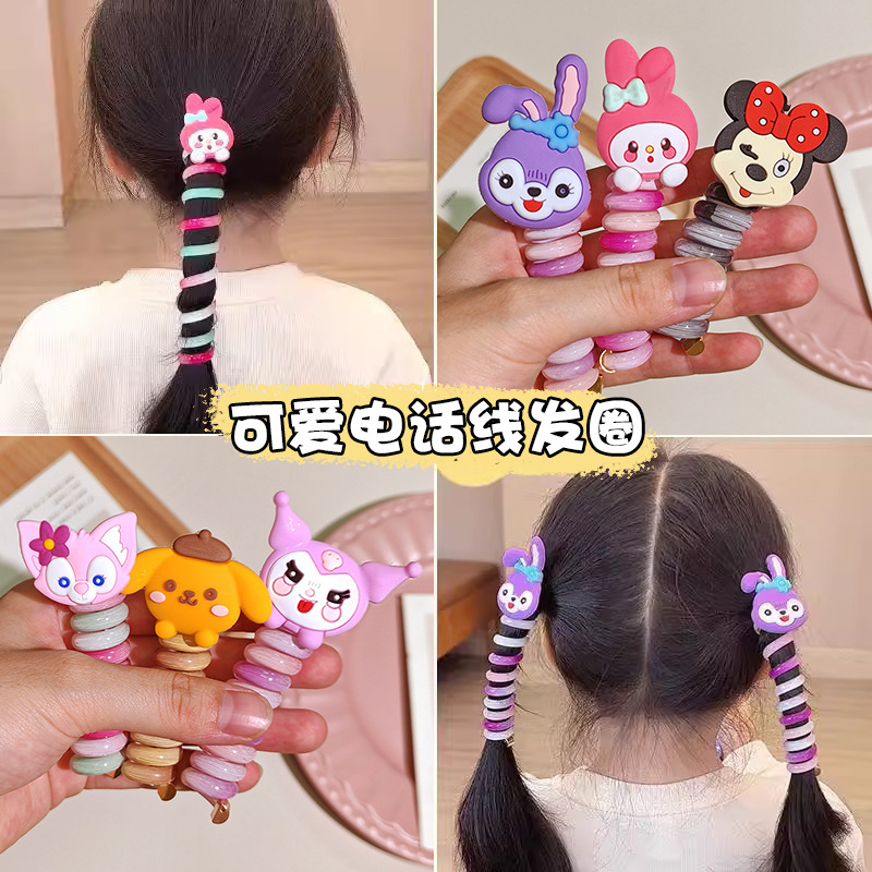 어린이 레인보우 컬러 산리오 전화 라인 헤어 링 소녀의 만화 헤드웨어 버블 브레이드 헤어 로프 쿨로 미 헤어 액세서리스토어 가기