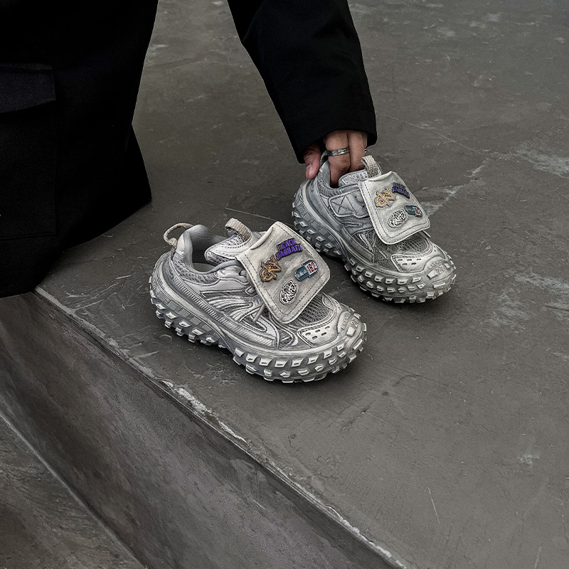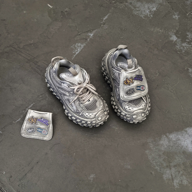 봄과 가을 어린이 운동화 한국 스타일 금속 스타일 소녀 아빠 신발 서양식 타이어 신발 메쉬 통기성 소년 운동화