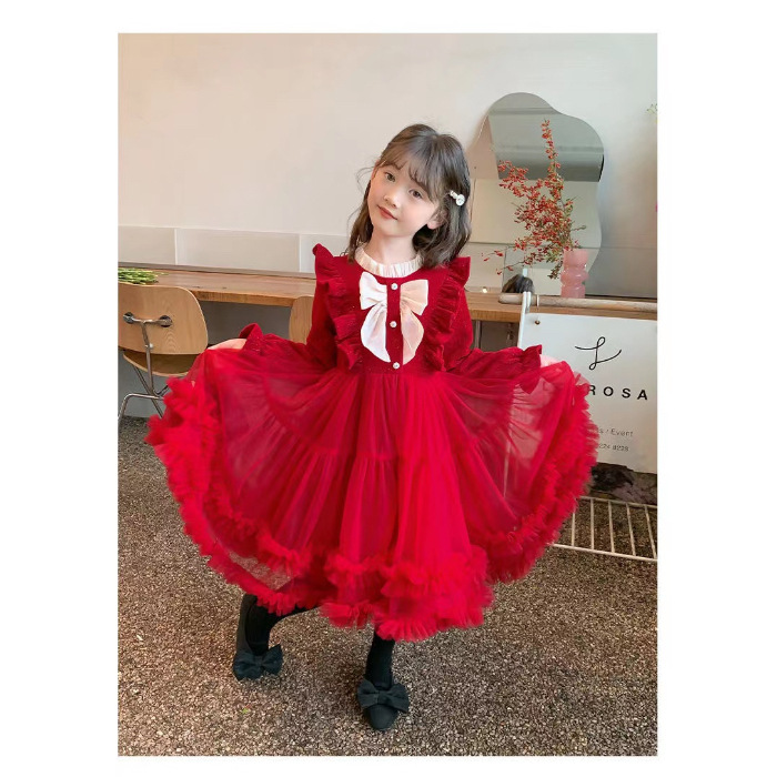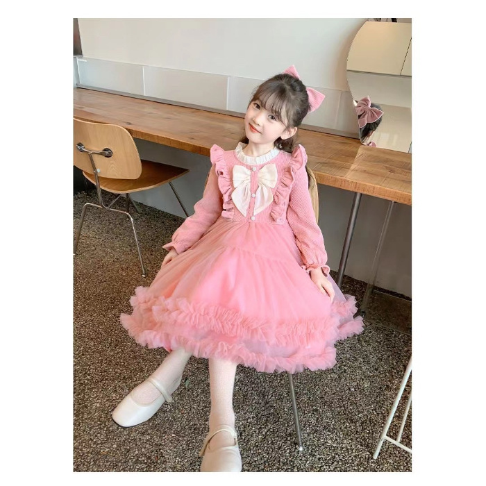 가을과 겨울 원피스 소녀 서양식 2024 새로운 어린이 소녀의 공주 원피스 폰테 베일 원피스 가을과 겨울 스커트