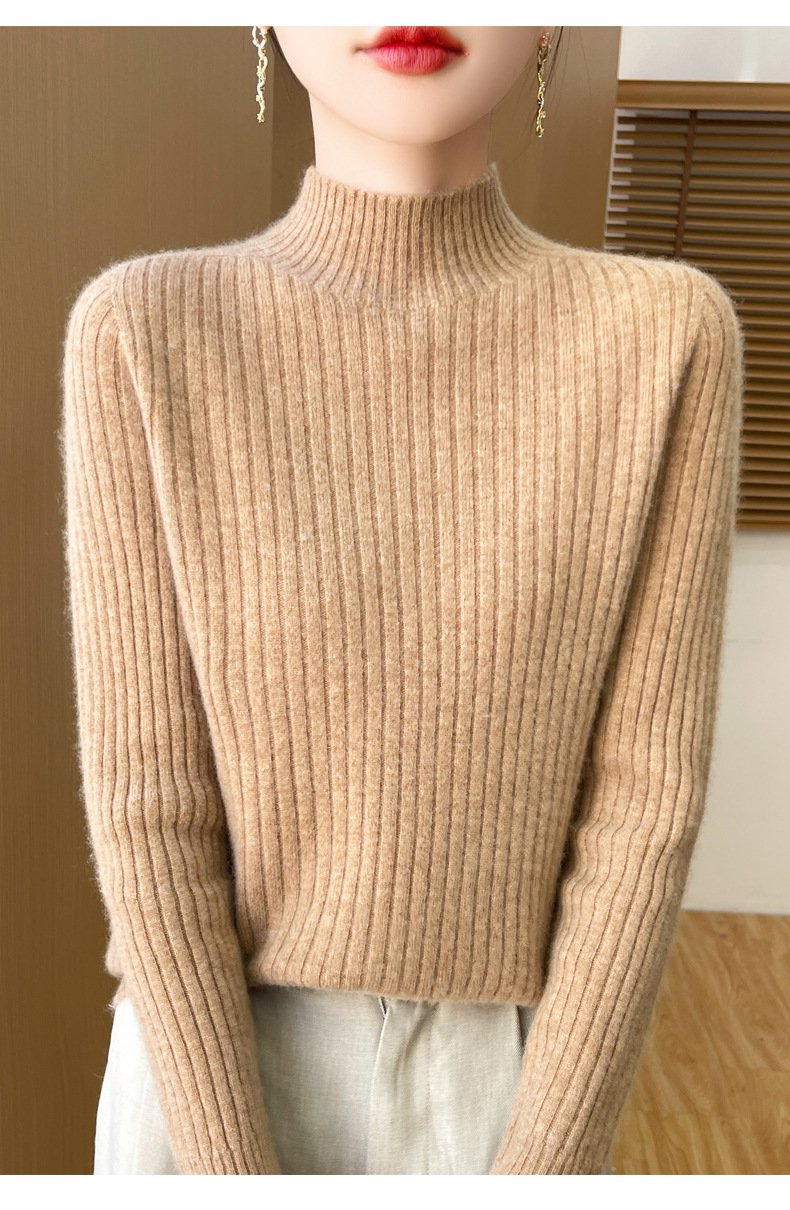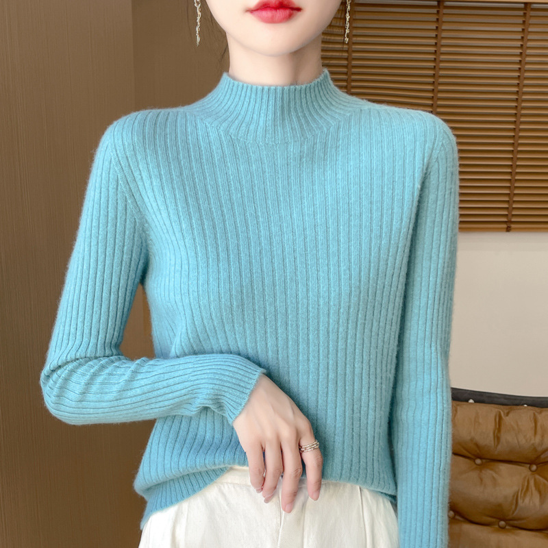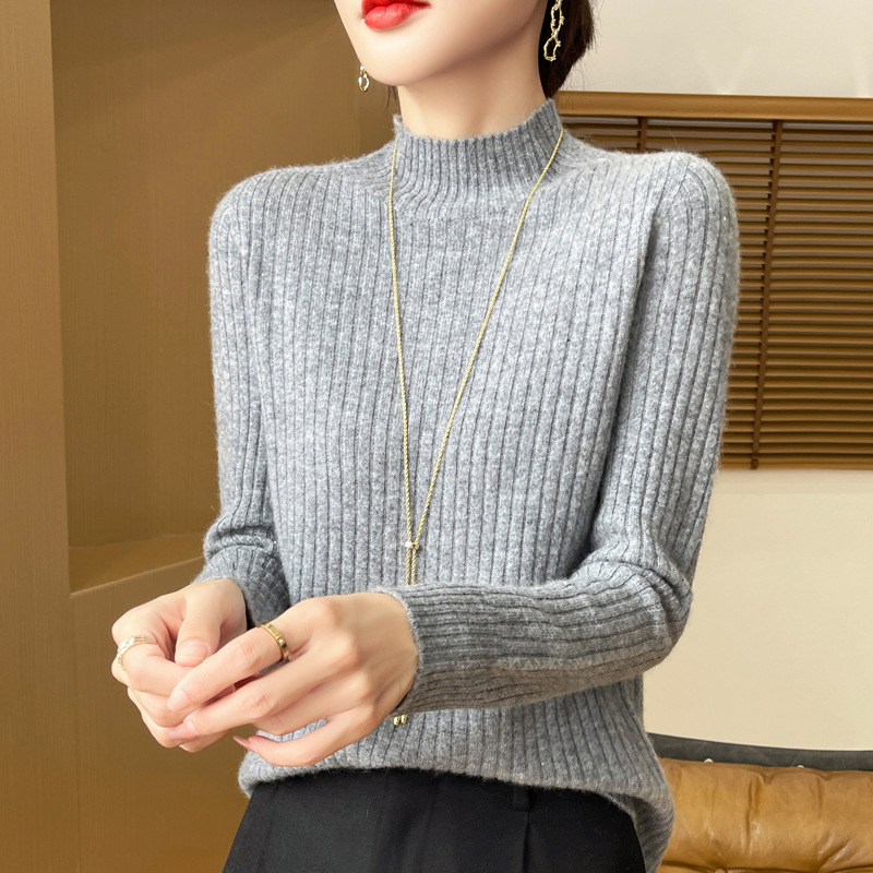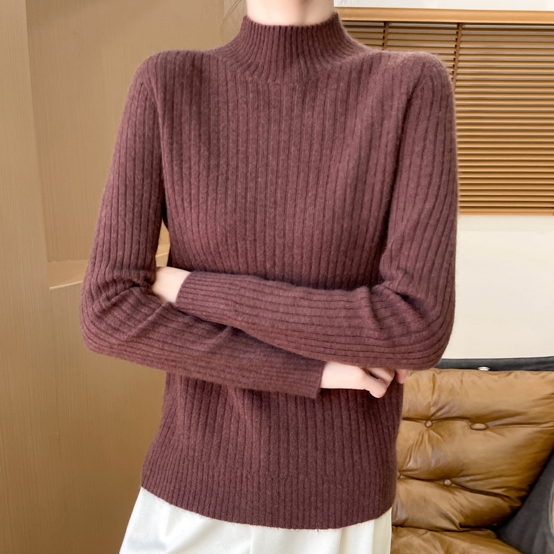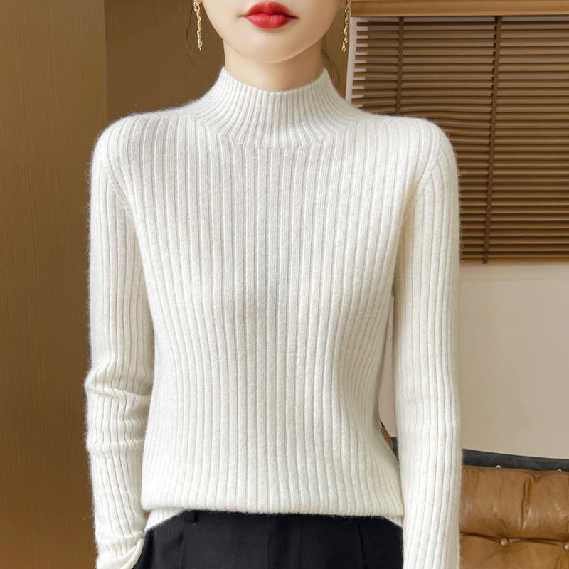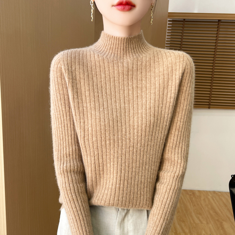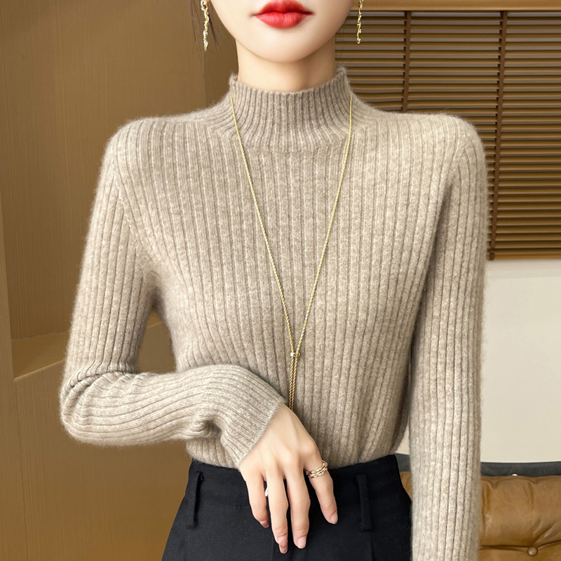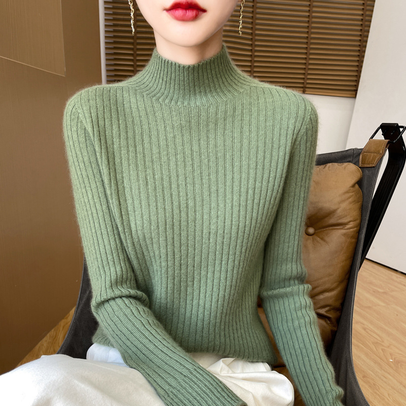 2024 년 새로운 도착 하프 터틀넥 스웨터 여성의 두꺼운 타이트 이너 풀오버 니트 스웨터 가을 및 겨울 올매치 베이스 셔츠
