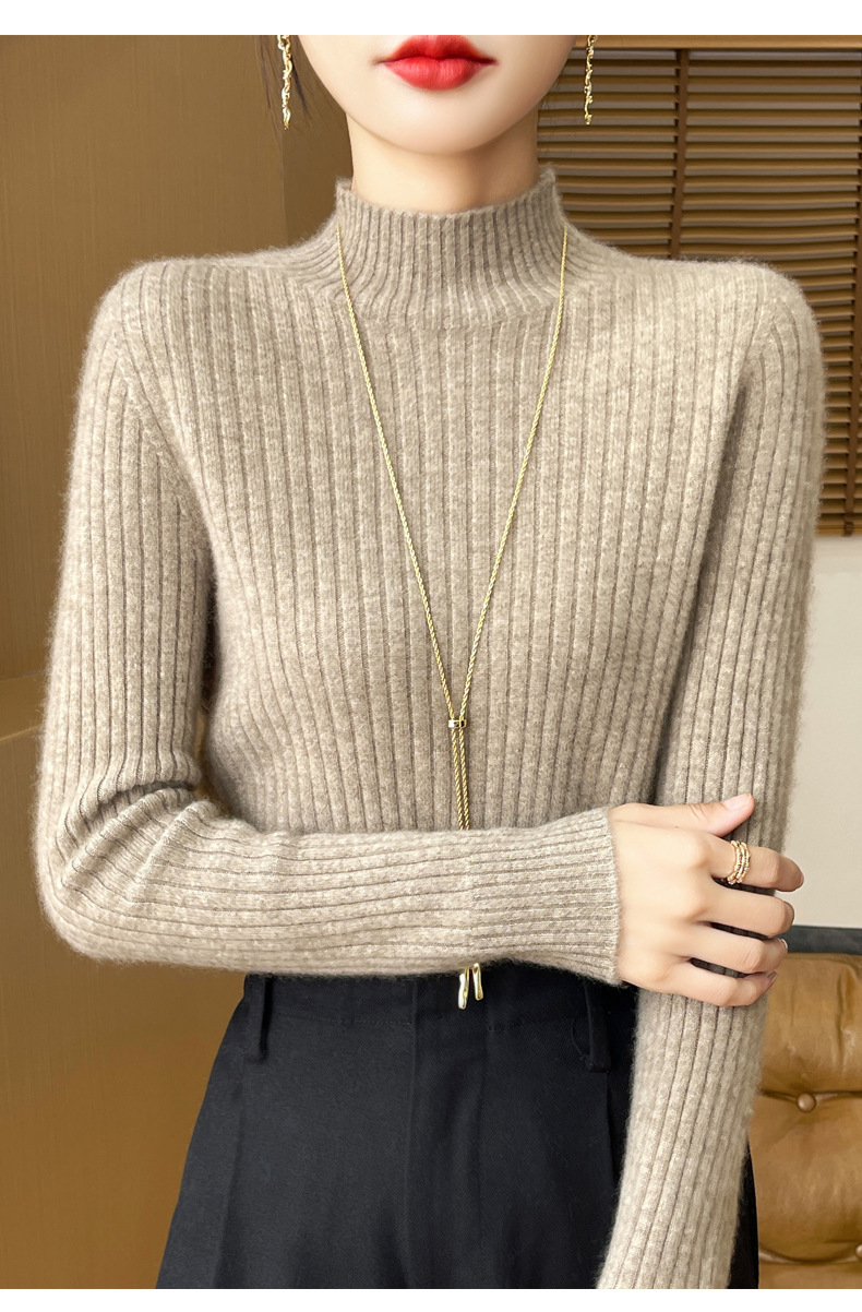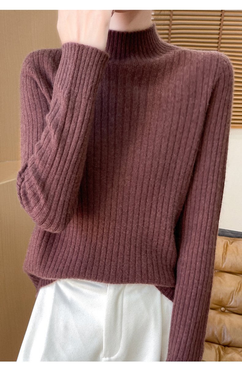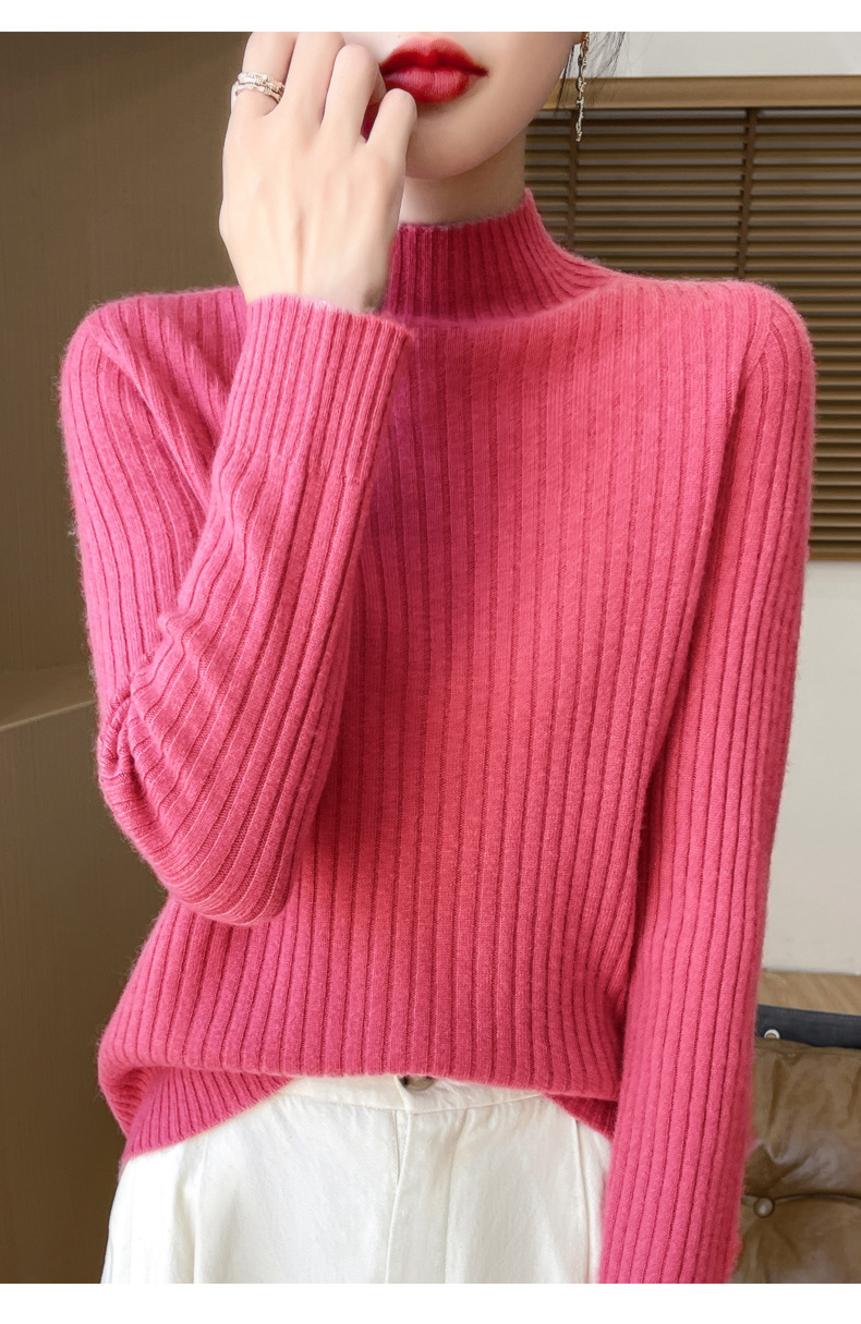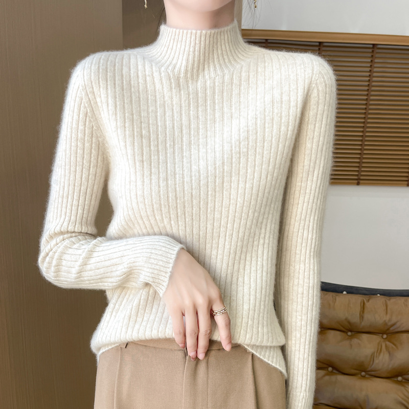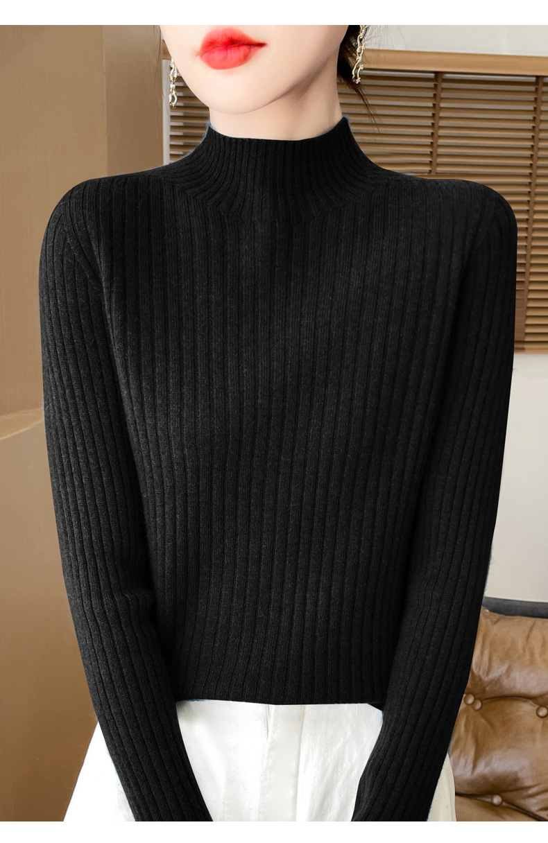 2024 년 새로운 도착 하프 터틀넥 스웨터 여성의 두꺼운 타이트 이너 풀오버 니트 스웨터 가을 및 겨울 올매치 베이스 셔츠