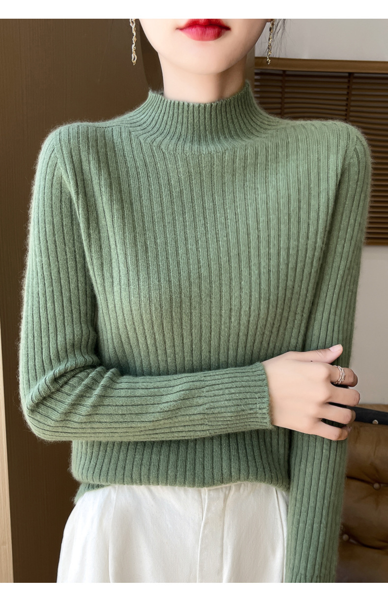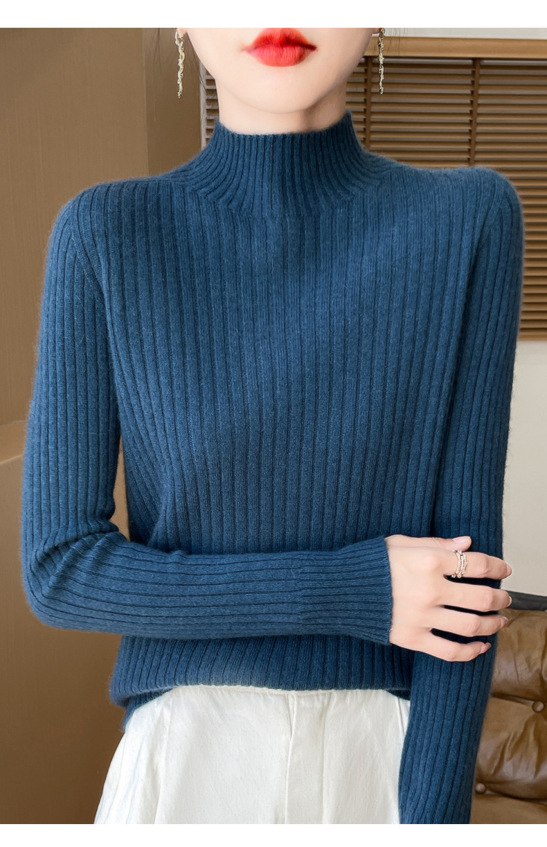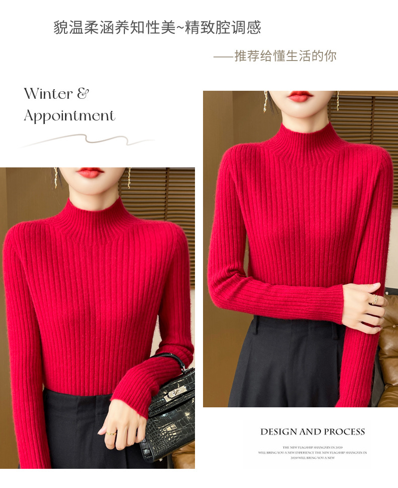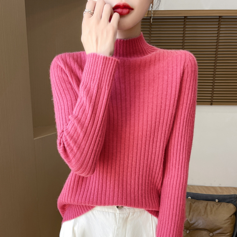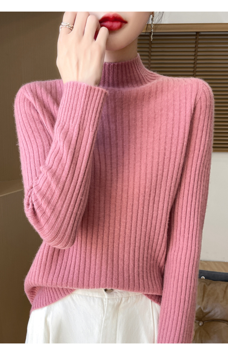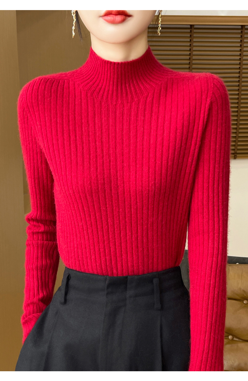 2024 년 새로운 도착 하프 터틀넥 스웨터 여성의 두꺼운 타이트 이너 풀오버 니트 스웨터 가을 및 겨울 올매치 베이스 셔츠