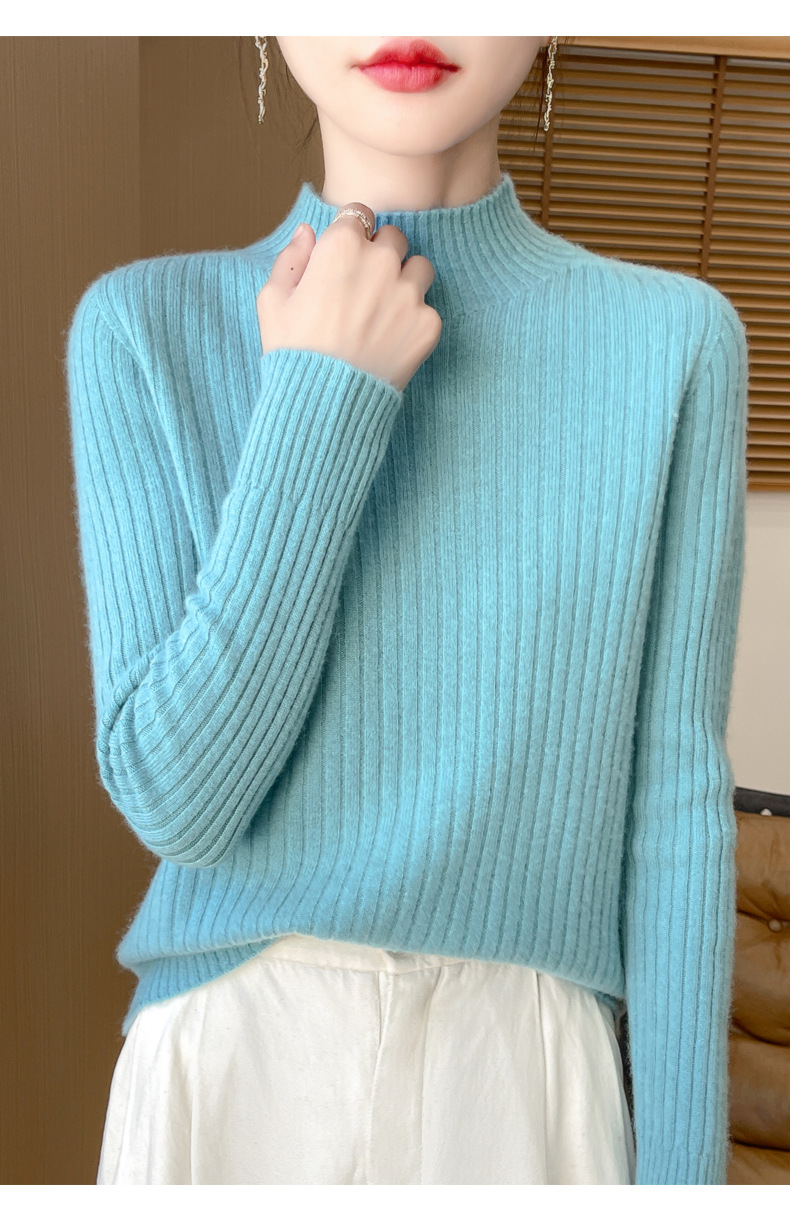 2024 년 새로운 도착 하프 터틀넥 스웨터 여성의 두꺼운 타이트 이너 풀오버 니트 스웨터 가을 및 겨울 올매치 베이스 셔츠스토어 가기