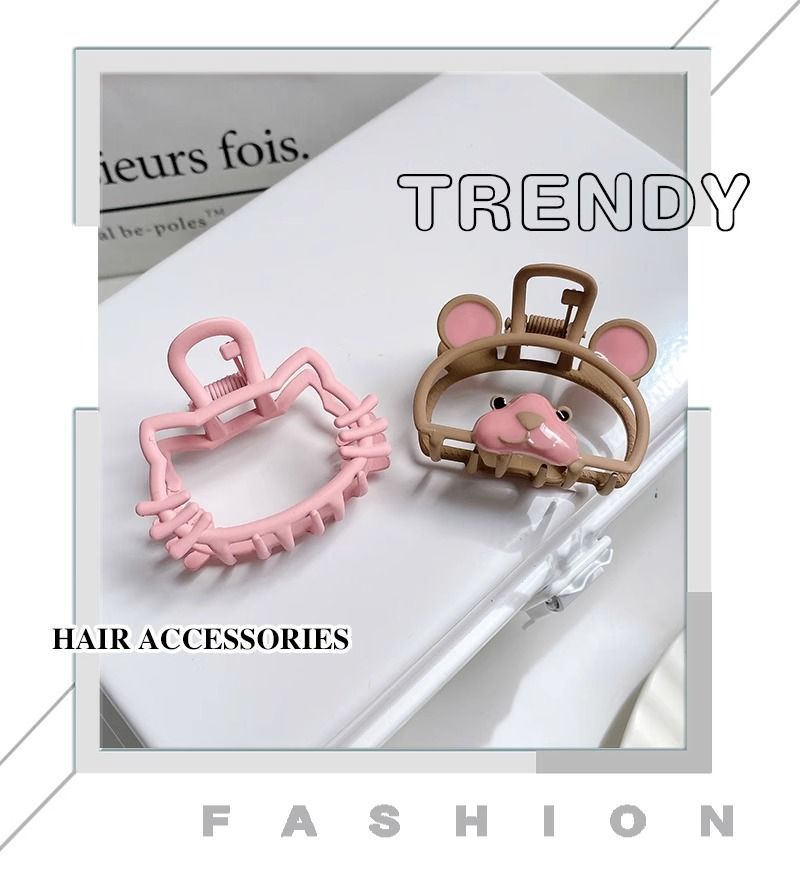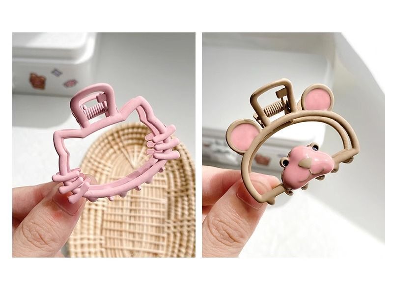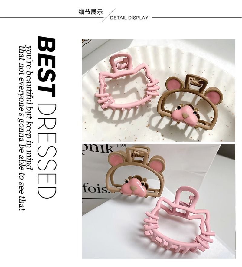 귀여운 핑크 Kt 고양이 잡아 클립 여성용 중공 곰 금속 머리핀 머리 크기 덜 절반 머리 간단한 상어 클립 헤드웨어스토어 가기