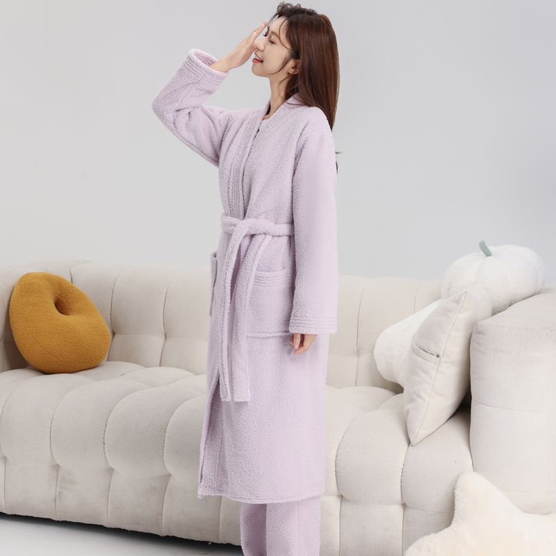 플란넬 커플 따뜻한 잠옷 산호 양털 여성용 가을과 겨울 세트 캐주얼 잠옷 복장