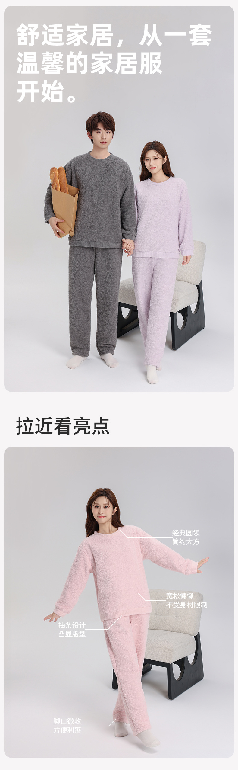 플란넬 커플 따뜻한 잠옷 산호 양털 여성용 가을과 겨울 세트 캐주얼 잠옷 복장스토어 가기