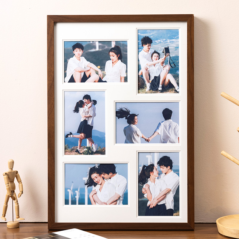 20N 솔리드 우드 포토 프레임 9 Jiugongge 다중 조합 테이블 사진 맞춤 DIY 인쇄 및 세척 기념 벽