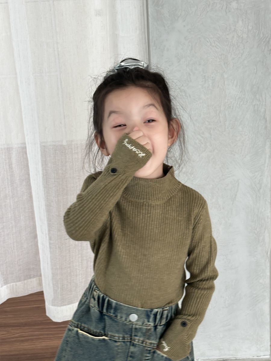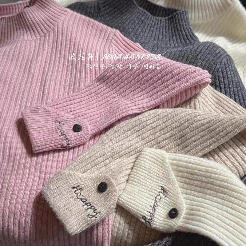 소년과 소녀 기본 셔츠 가을, 겨울 2025 새로운 스타일 하프 터틀넥 슬림 니트 패션 가을 의류 여성용 아동 스웨터스토어 가기