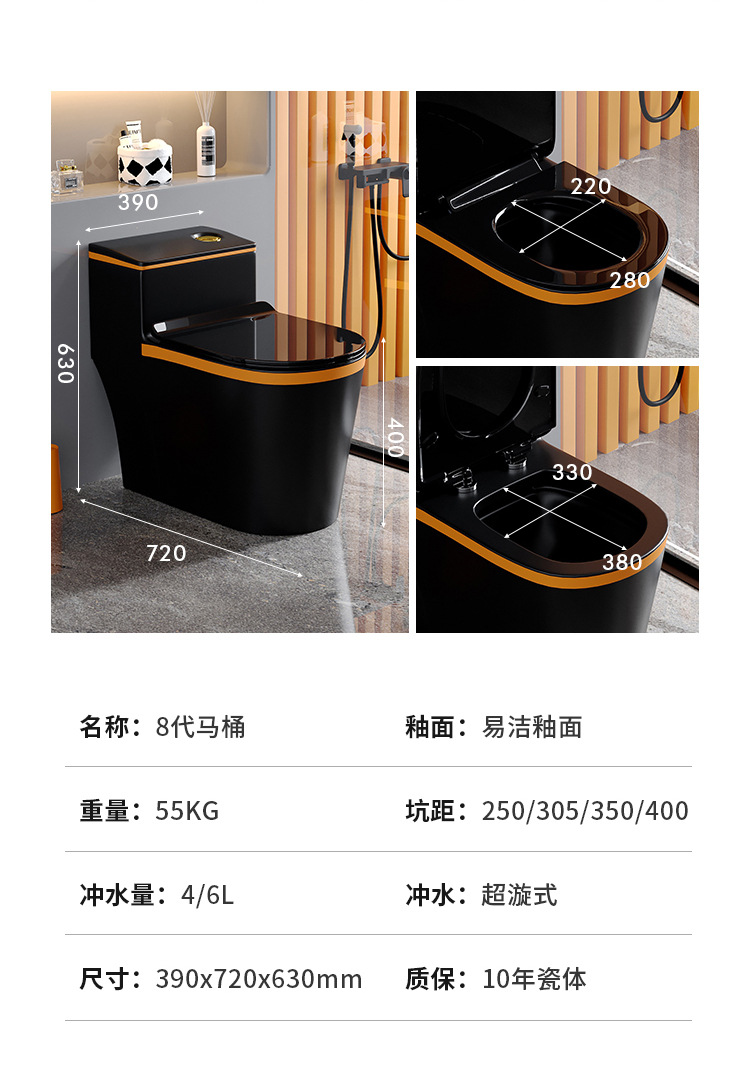 Manglis 라이트 럭셔리 블랙 가정용 플러시 오렌지 화장실 화장실 세라믹 탈취제 사이펀 타입스토어 가기