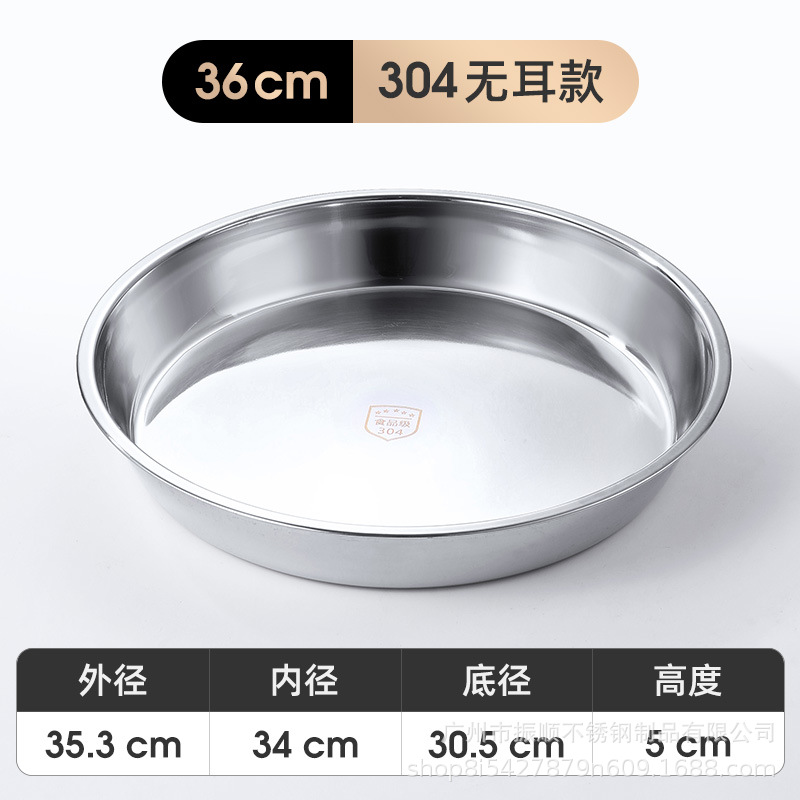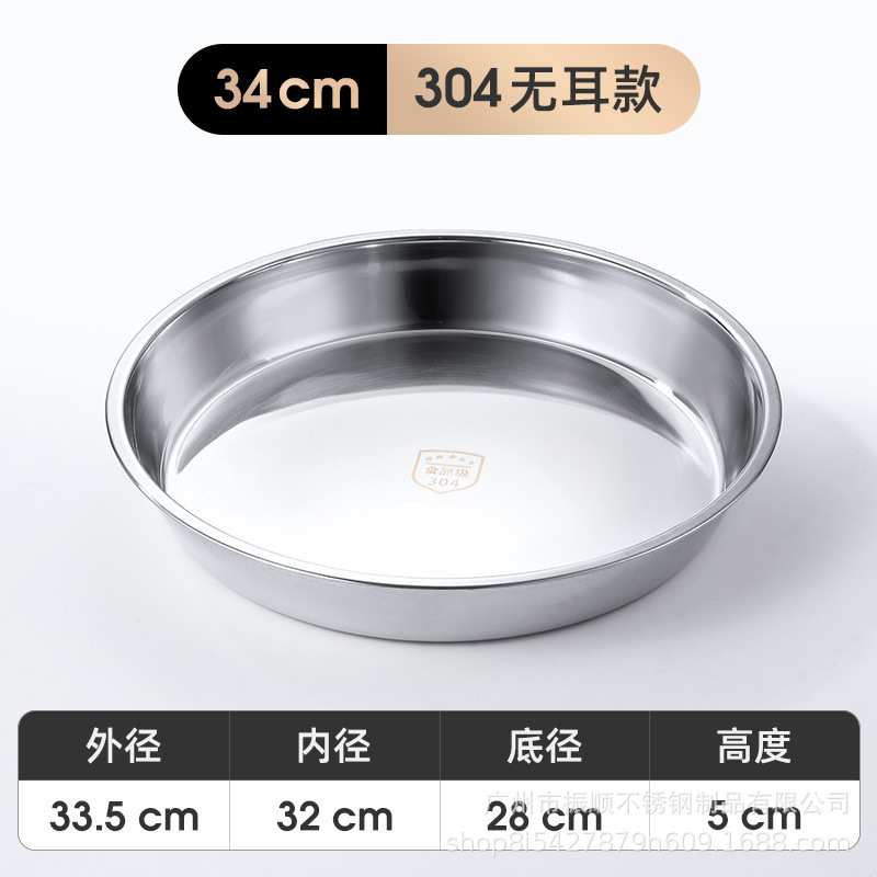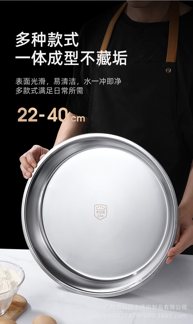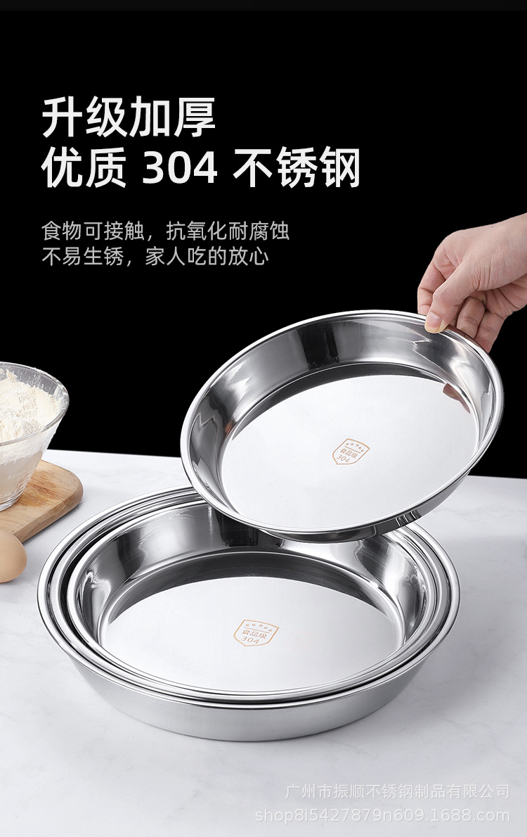 304 두꺼운 스테인레스 스틸 대형 플레이트 가정용 트레이 상업용 케이크 플레이트 매점 플레이트 디스크 대형 스팀 플레이트 쌀 플레이트