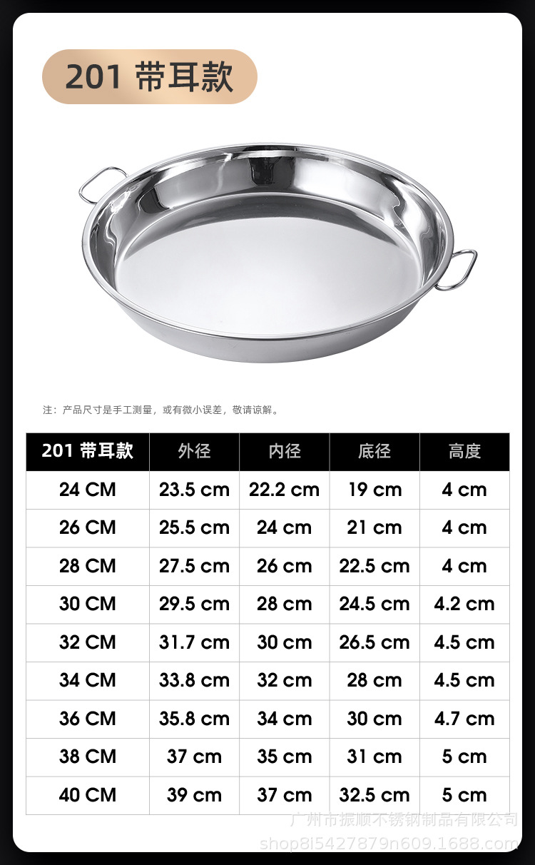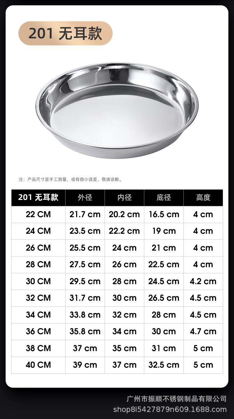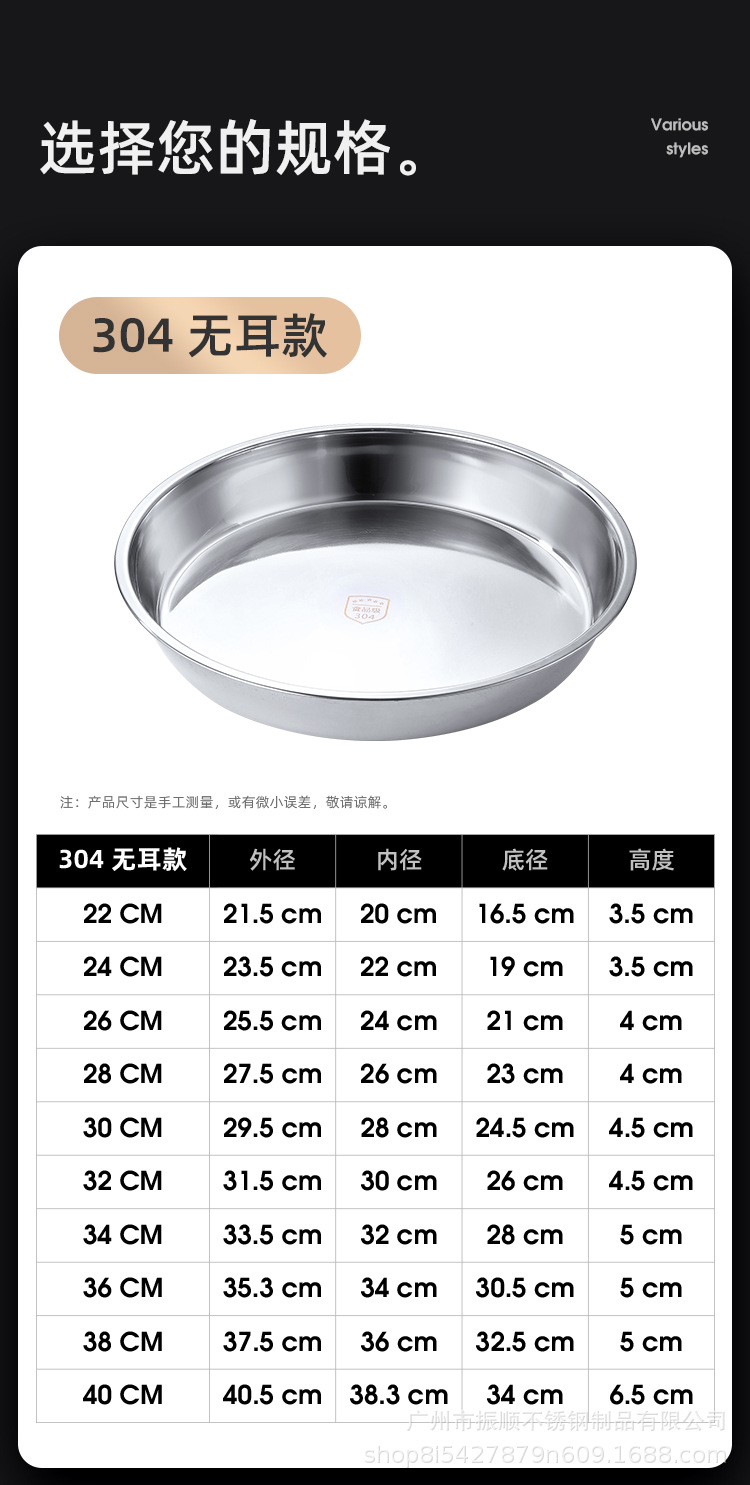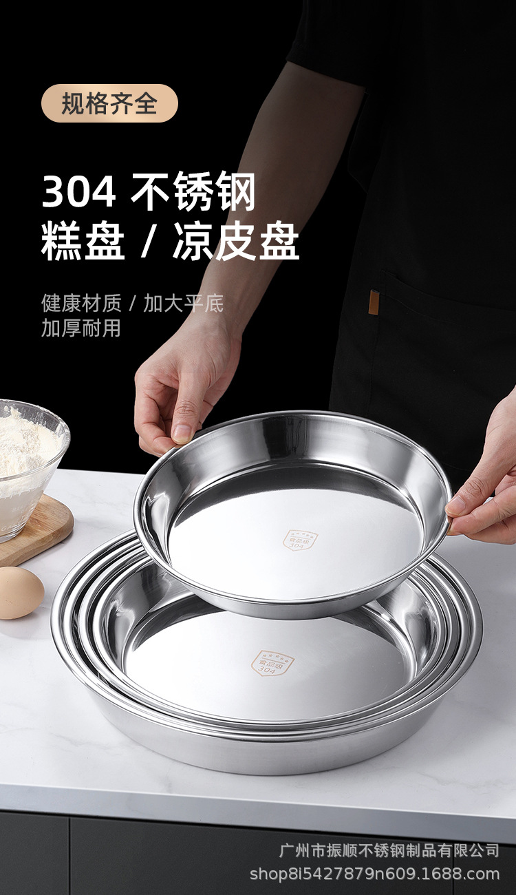 304 두꺼운 스테인레스 스틸 대형 플레이트 가정용 트레이 상업용 케이크 플레이트 매점 플레이트 디스크 대형 스팀 플레이트 쌀 플레이트