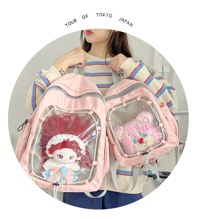 슈퍼 귀여운 일본 투명 2 차원 신선한 소녀 배낭 통증 가방 애니메이션 대학 스타일 레저 간단한 학생 책가방