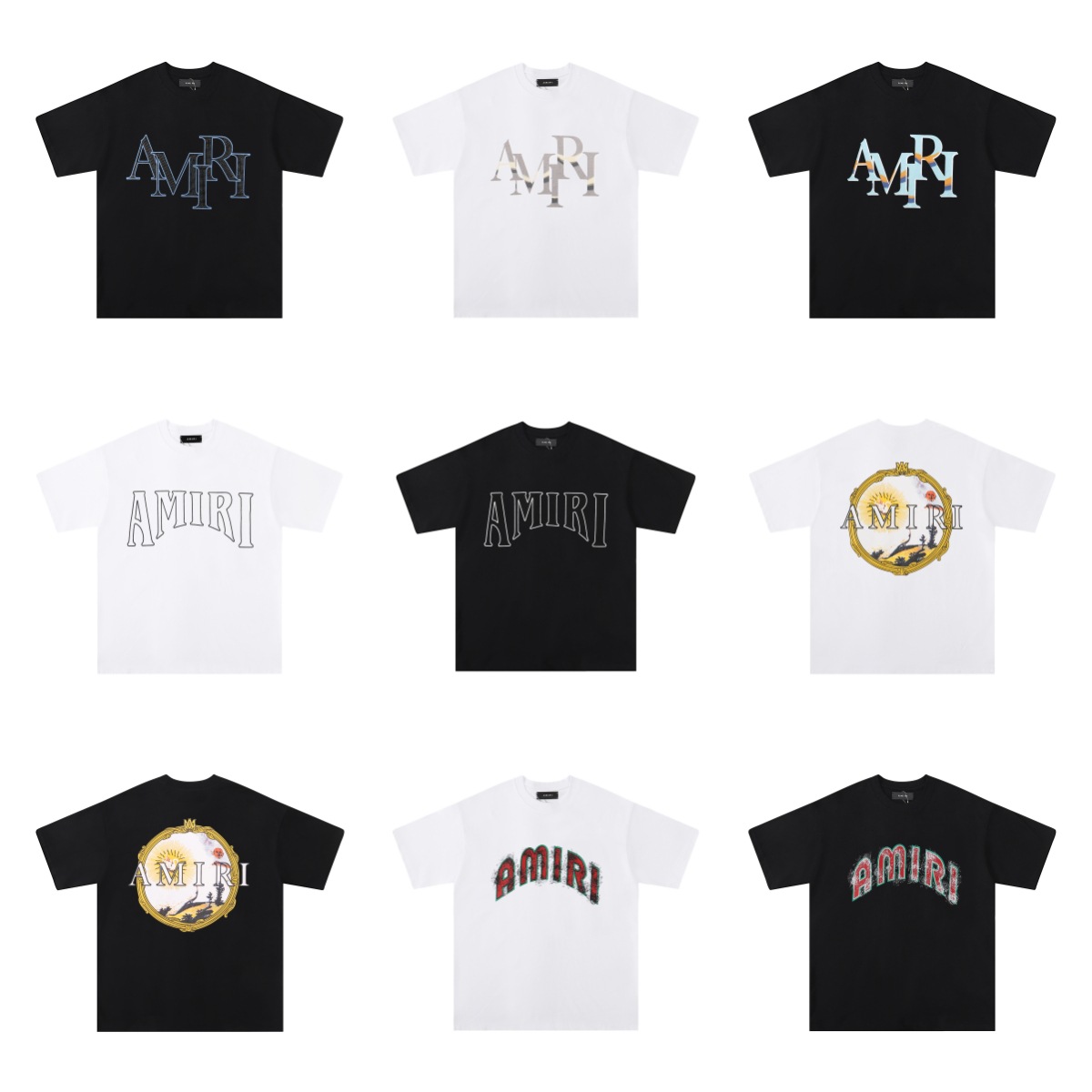 2024 가을과 겨울 새로운 amril 편지 인쇄 짧은 소매 티셔츠 느슨한 남성과 여성의 국경 간 전자 상거래 공급 핫 세일스토어 가기