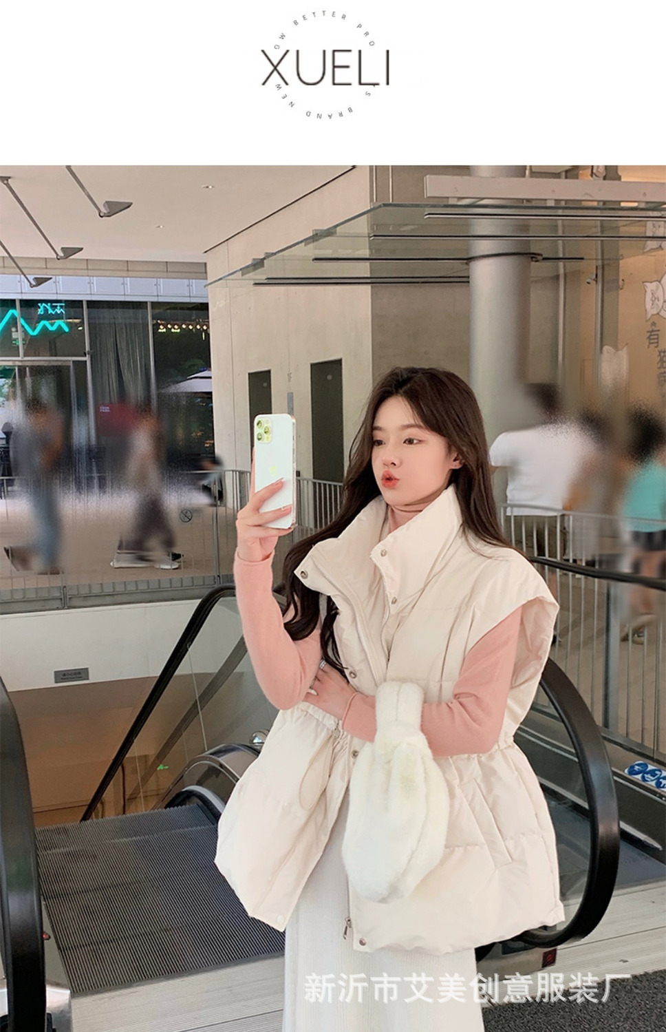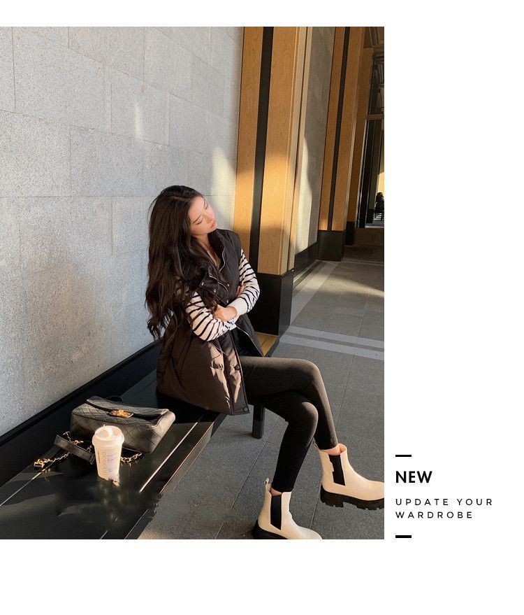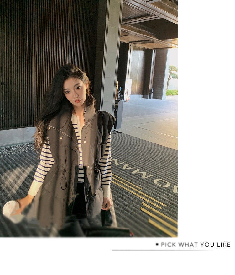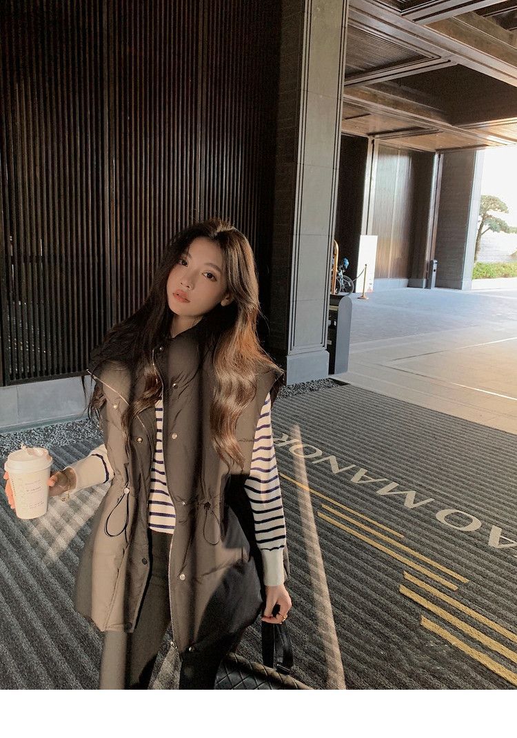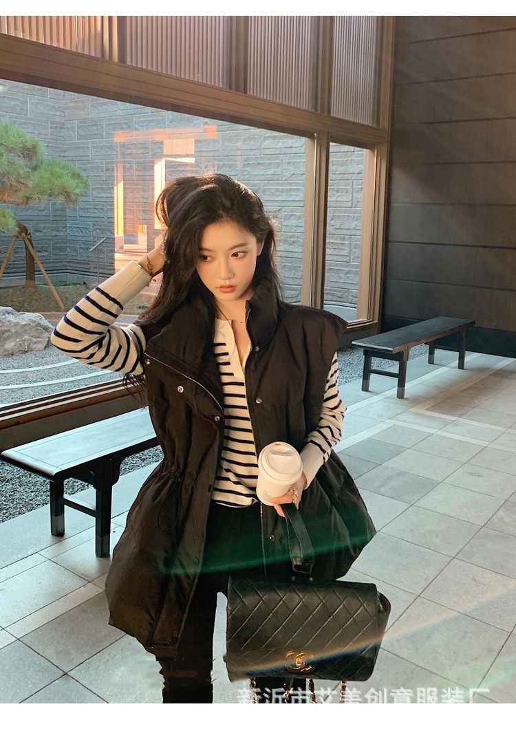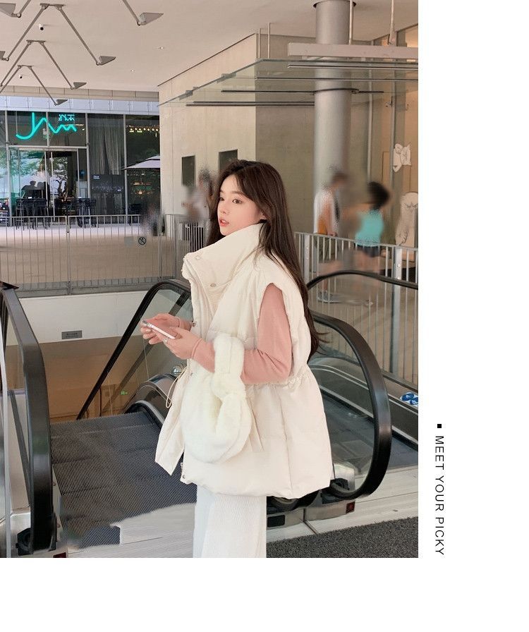 수직 칼라 민소매 조끼 다운 재킷 여성 주름 허리 슬리밍 올 매치 화이트 덕 다운 재킷 가을 및 겨울 새 재고스토어 가기
