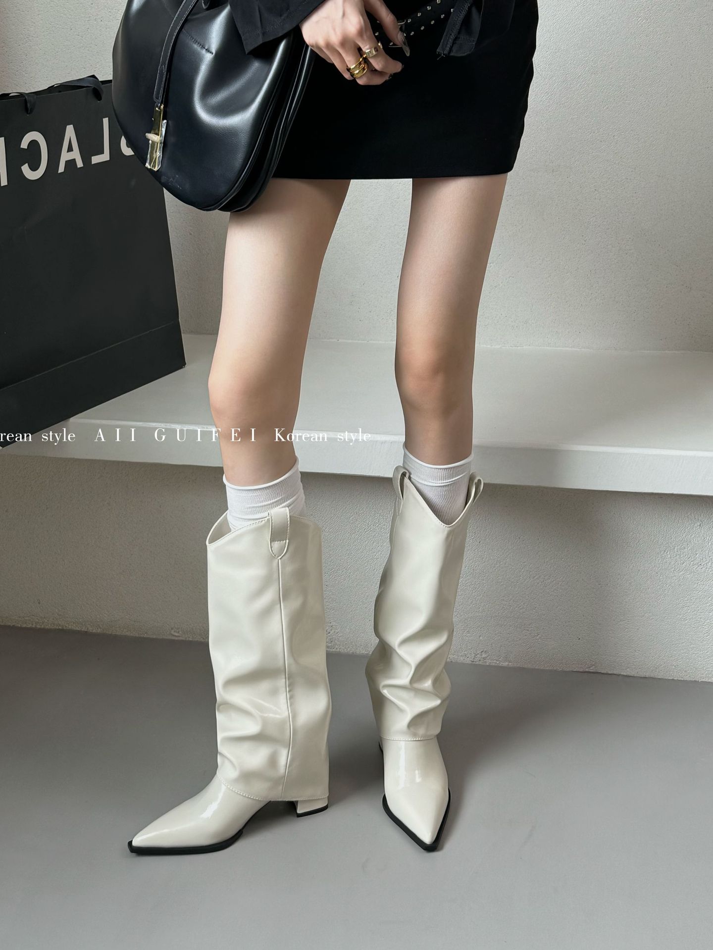 여성용 롱부츠, 2025 가을 겨울 여성용 부츠, 뾰족한 발가락 부츠, 두꺼운 굽, 중간 굽 부츠, 하이탑 웨스턴 나이트 부츠스토어 가기