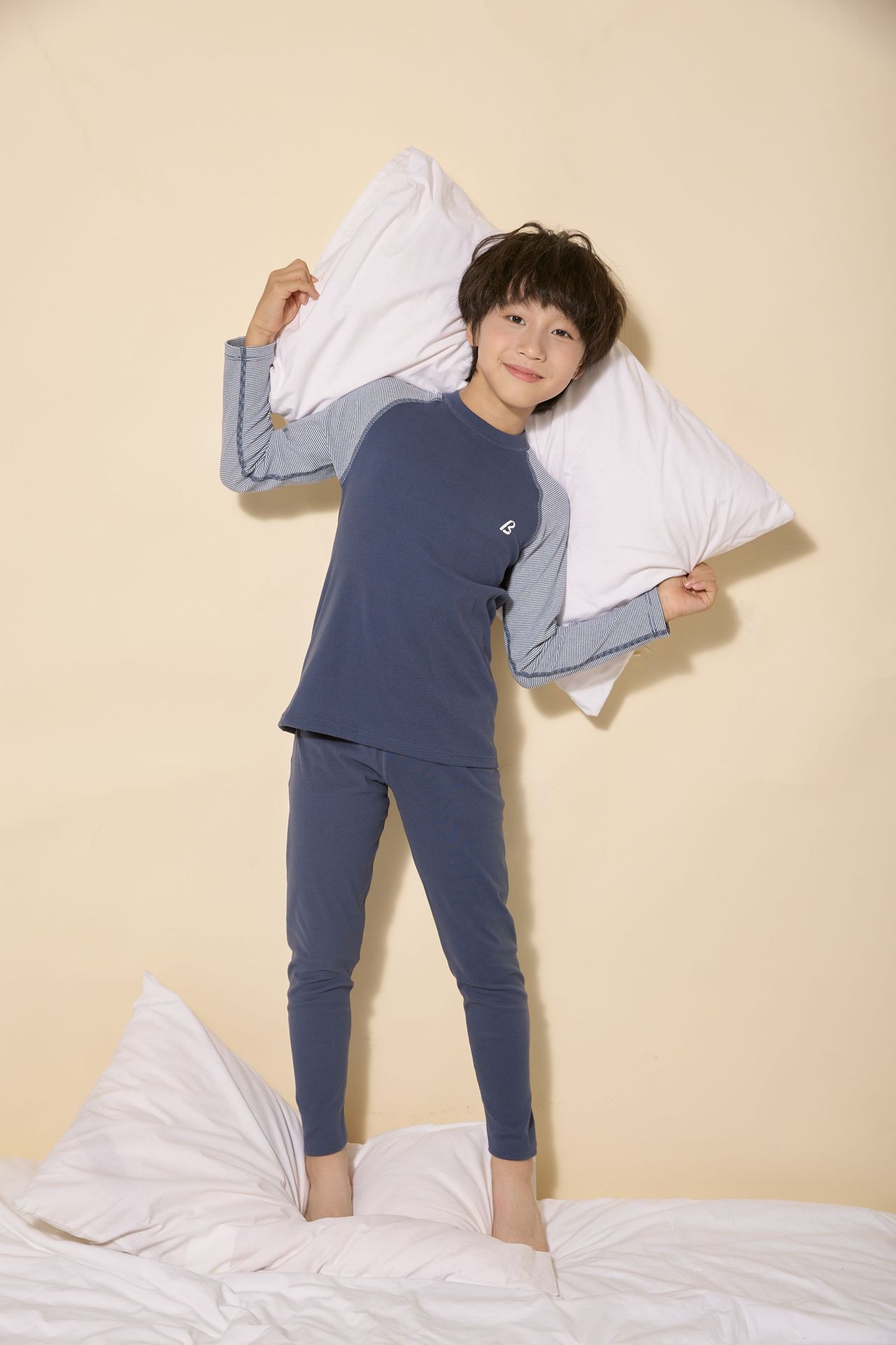 • 래글런소매 아동 속옷세트-네이비블루