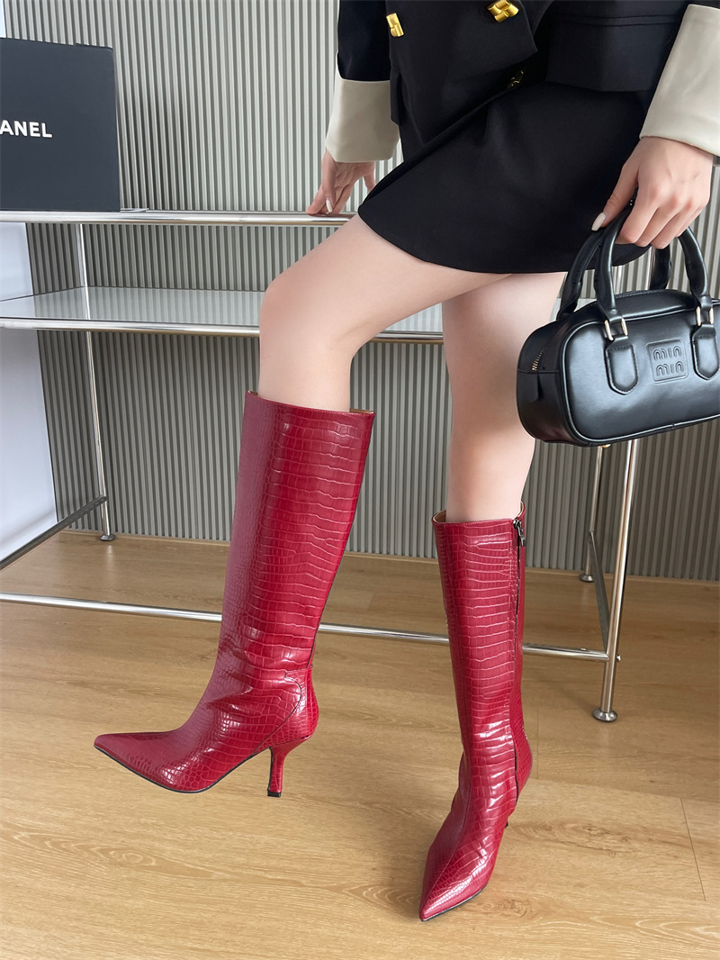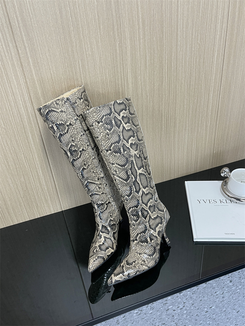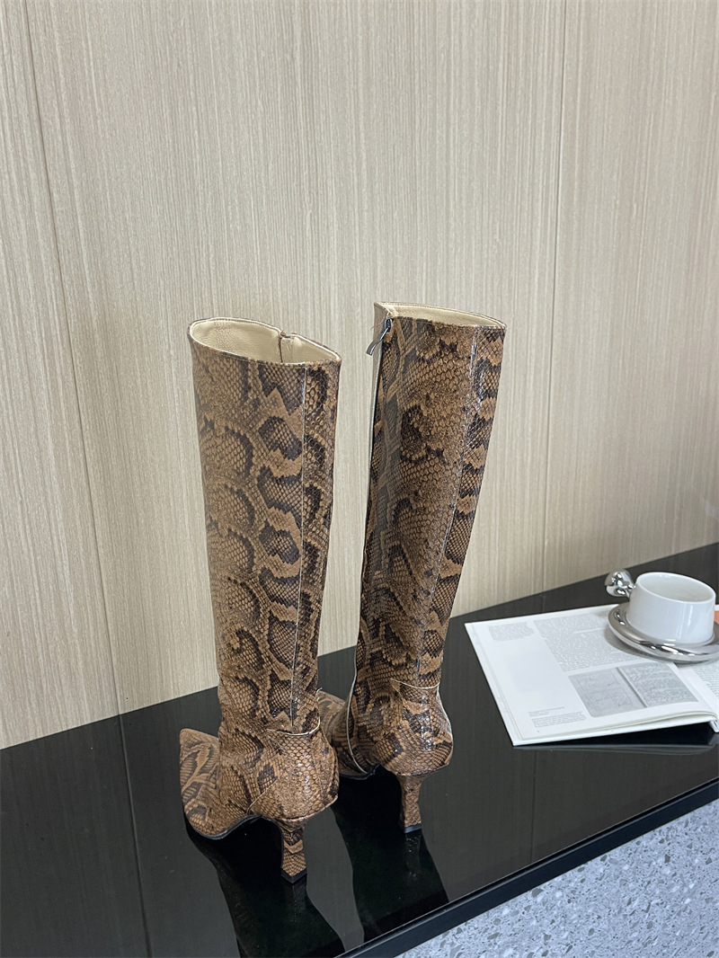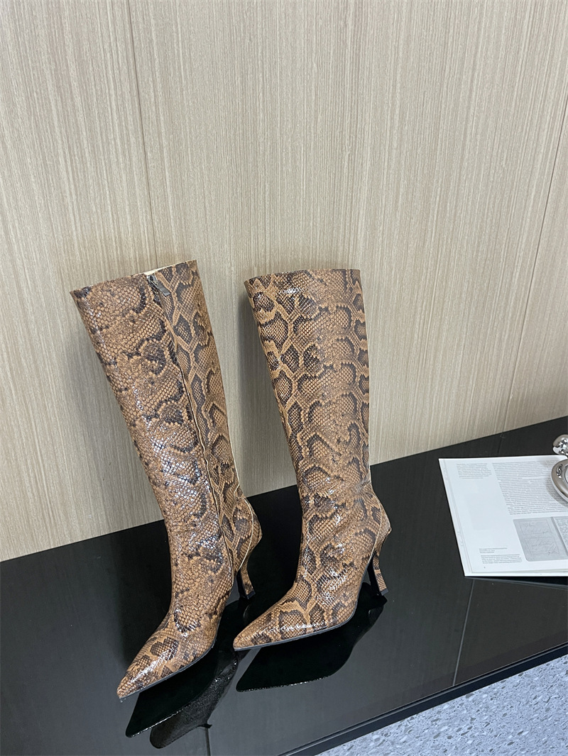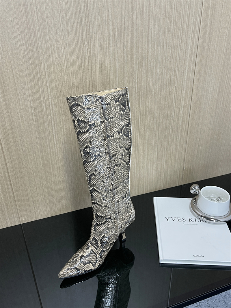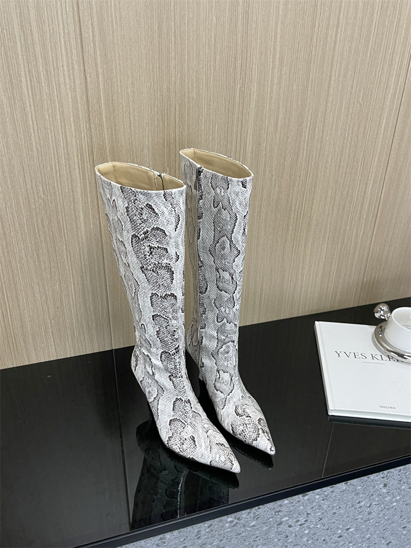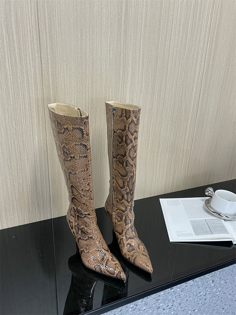국경 2024 유럽과 미국의 대외 무역 새로운 여성 부츠 뾰족한 뱀 패턴 사이드 지퍼 하이힐 부츠 mzu2820-3