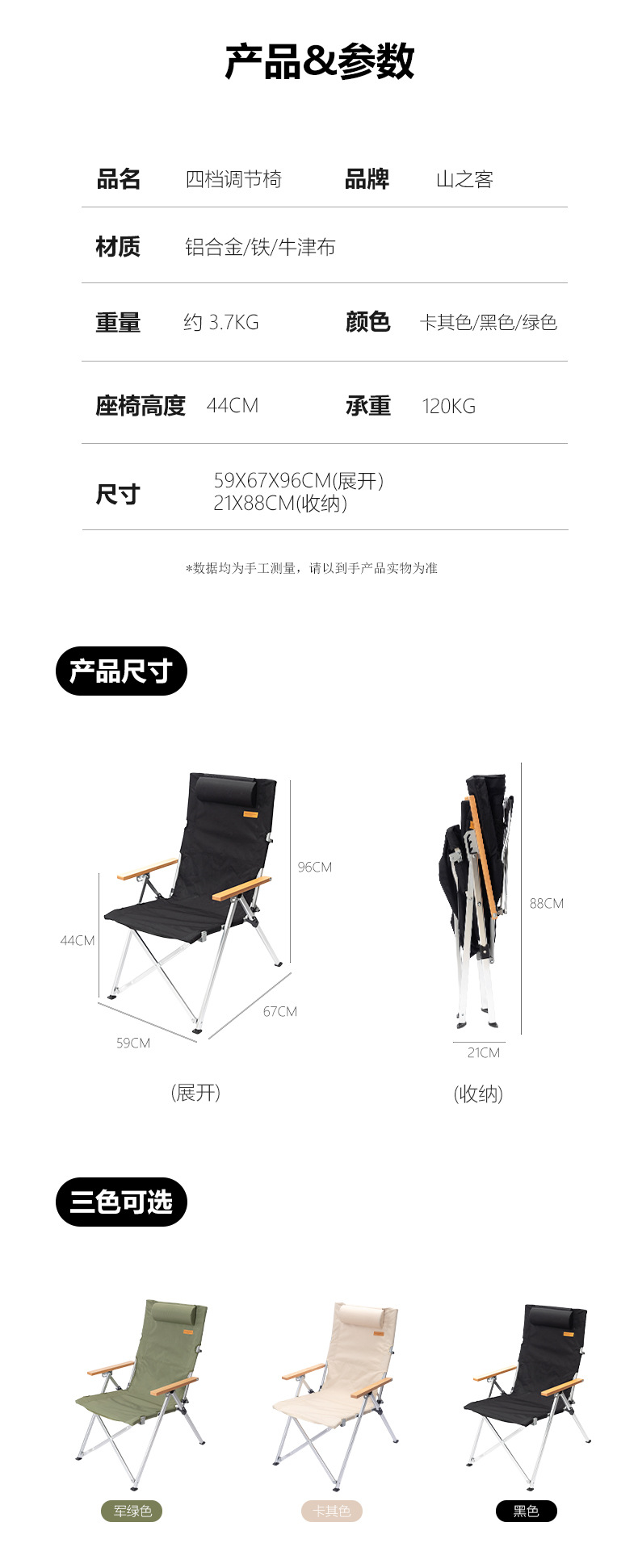 • 카키색 베개 4단 조절식 의자 SZK1052