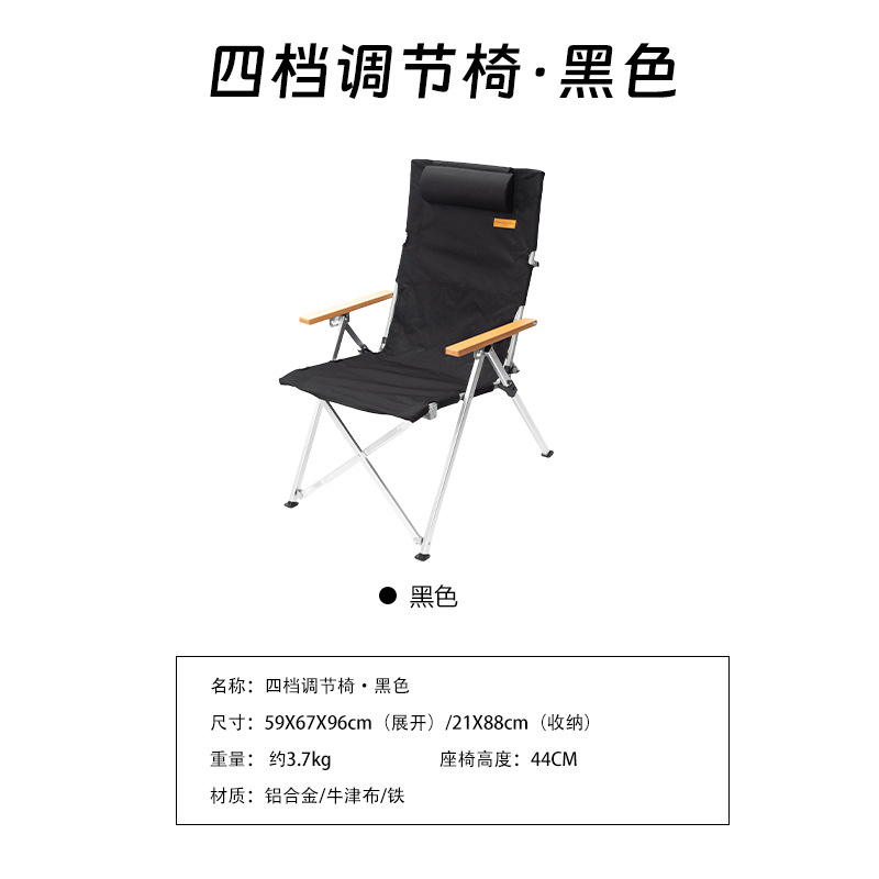 야외 휴대용 캠핑 자율 주행 여행용 베개가 있는 Mountain Guest 4단 조절 의자, 보조 손잡이가 있는 접이식 보관함