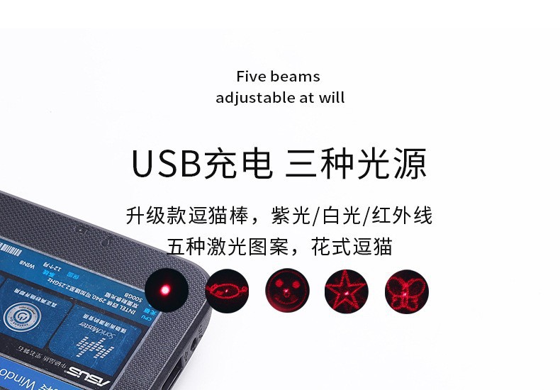 USB 충전식 레이저 고양이 장난감 다중 패턴 고양이 장난감 아마존 애완동물 용품 도매 레이저 고양이 장난감 펜스토어 가기