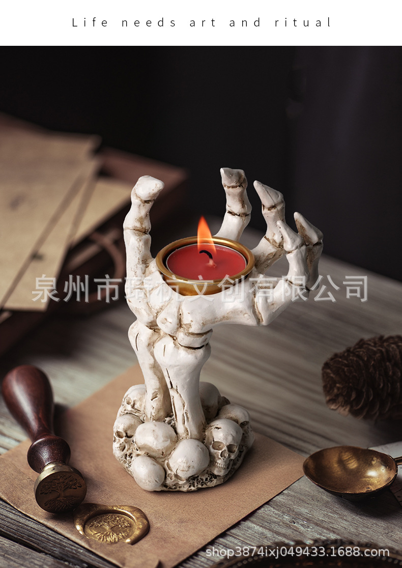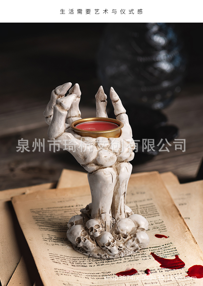 국경 간 새로운 할로윈 분위기 장식품 두개골 손 촛대 현관 거실 수지 장식품스토어 가기